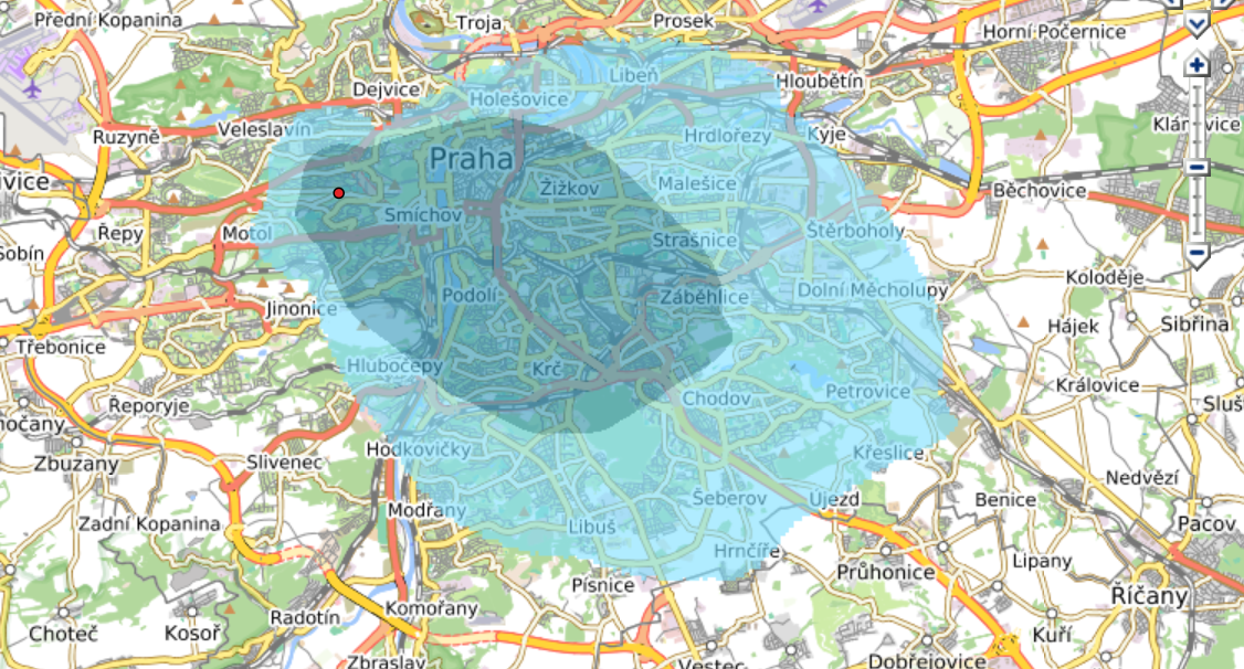 Orientační pokrytí DAB+ Českých radiokomunikací