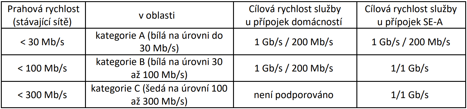 Nemá jít jen o připojení domácností, ale i tzv. socioekonomických aktérů (SE-A), mezi které patří školy, nemocnice, úřady a podobně. Přihlášky o dotace mohou operátoři podávat od 28. dubna do 31. srpna letošního roku s tím, že podpořené projekty mají být hotové nejpozději do konce roku 2025.