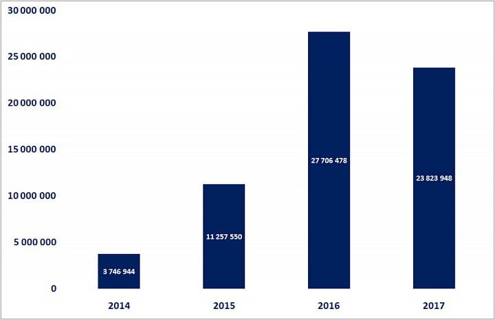 „Loňský rok nebyl pro nové generické domény (new gTLD) vůbec příznivý. Zájemcům se sice začala nabízet k registraci celá řada domén, v celkovém souhrnu však nové domény zaznamenaly poprvé ve své historii propad. Zatímco na začátku roku bylo registrováno 27 710 468 domén, na konci roku to bylo již jen 23 823 948. Češi měli registrováno celkem 23 245 new gTLD, to je méně než 0,1 procenta,“ píše na blogu správce národní domény CZ.NIC.