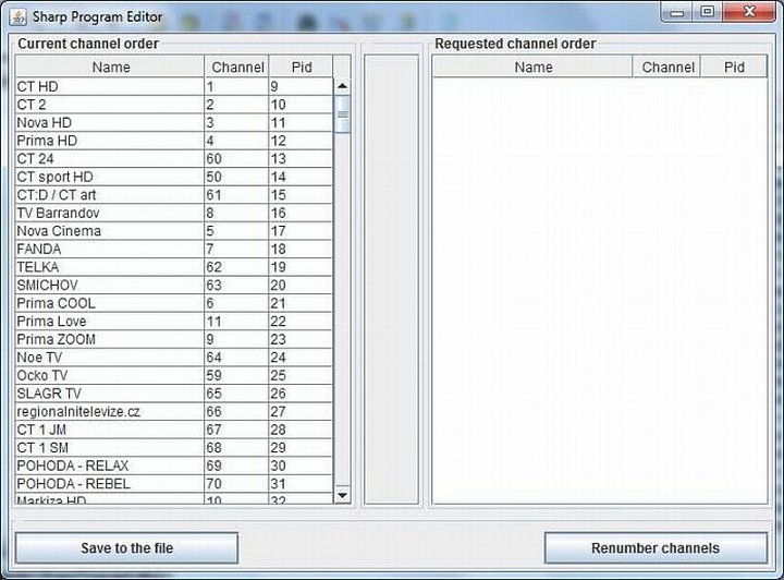 Program v angličtině, slovenštině, švédštině, dánštině a němčině má nabídnout manuální setřídění kanálů jako takové a jejich přečíslování. Podle webové stránky byl zkoušen na televizorech LC-60LE652E a LC-60LE752E s tím, že pracovat by měl s televizory Sharp, rok výroby 2013/2014.