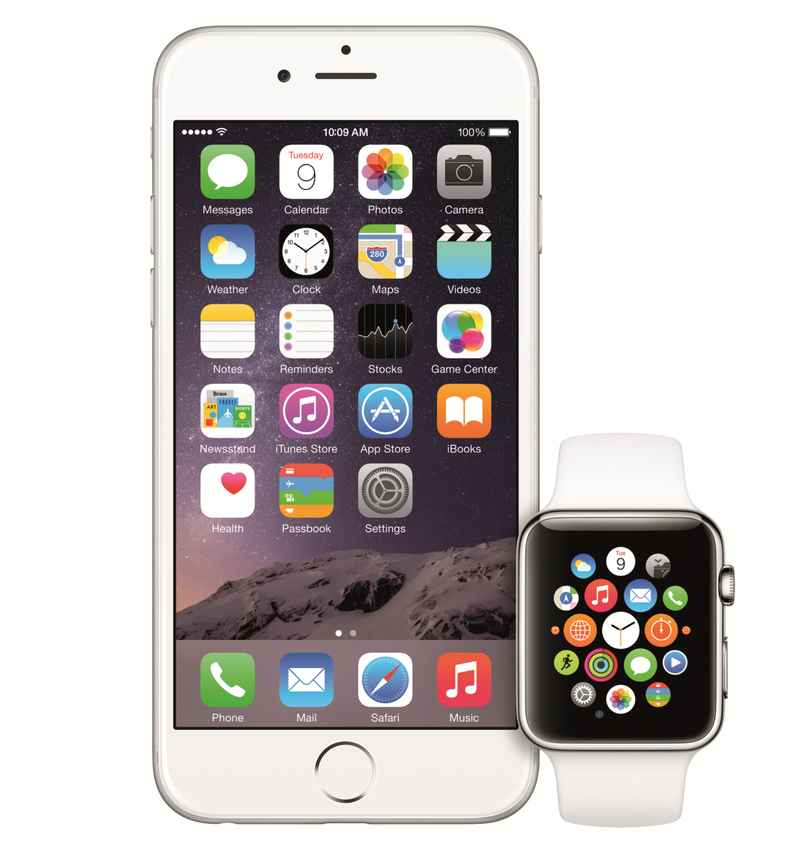 Dalším představeným hardwarem jsou dlouho očekávané chytré hodinky Apple Watch, které mají nakonec hranatý tvar. Přístroj, který samozřejmě funguje jen pokud je spárovaný s iPhonem (podporovány budou i iPhony řady 5), se dá ovládat jednak prostřednictvím dotykového displeje, jednak pomocí korunky (Apple ji nazývá digital crown), jejíž otáčení funguje podle situace jako zoom nebo posouvání položek v seznamu.