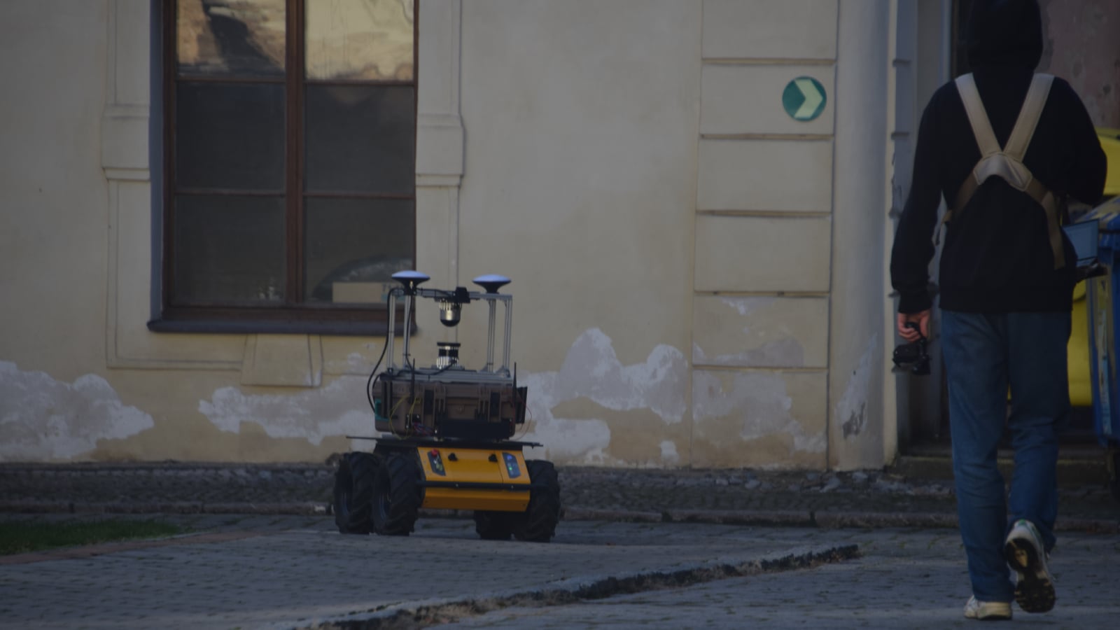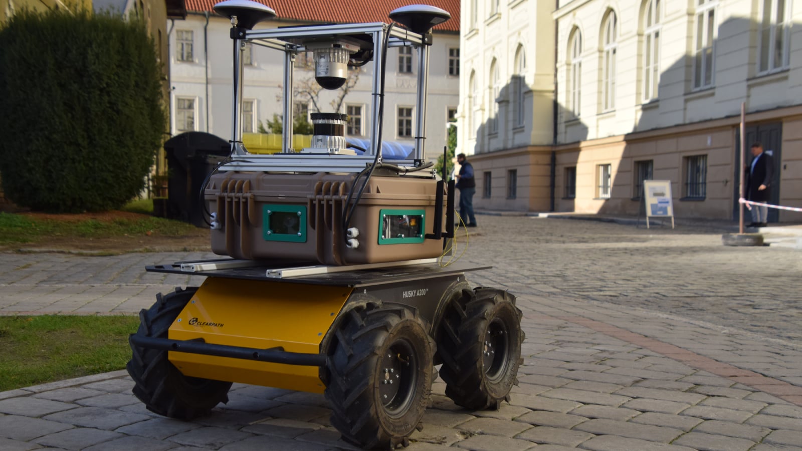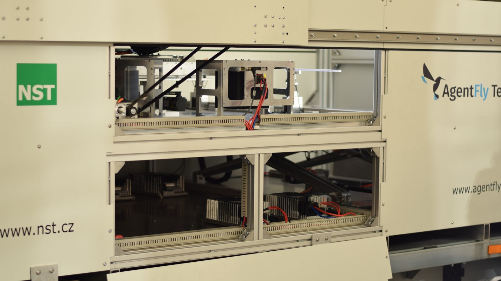 Zatím se na dvoře projíždí autonomní pozemní robotická jednotka. Má čtyřkolový podvozek s možností otáčení na místě, senzorickou věž se dvěma 360° lidary a několika kamerami včetně multispektrálních. Oba můžou fungovat v prostředí bez signálu GNSS. A nad nimi dokáže dohlížet ještě dron s vlastní technologií bezdrátového nabíjení a chytrým systémem pro výměnu baterií, který je sám dokáže vyměňovat tak rychle, aby stroj byl mimo provoz jen pár vteřin.