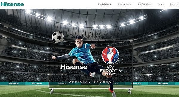 Na adrese Hisense.cz najdete webové stránky výrobce s výrazným oznámením o sponzorství fotbalového Euro 2016. Web sice ještě nepracuje úplně a některé volby, například odběr novinek či tiskové zprávy, jsou nefunkční, ale většina odkazů na prodejce už jede.