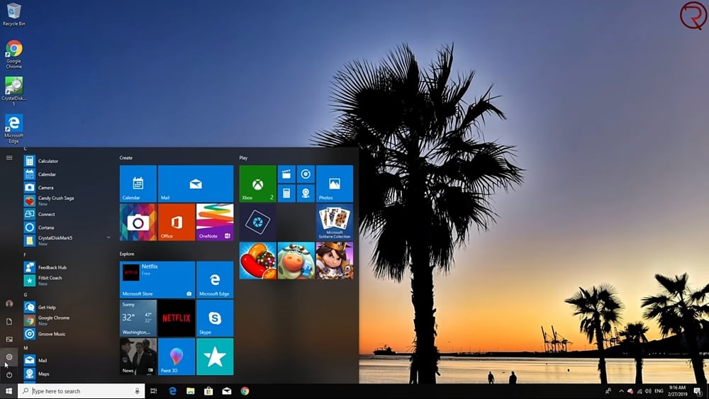 J45 – Windows 10 – plocha a Nabídka Start.
