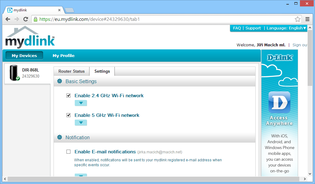 Správa routeru přes portál mydlink.com.