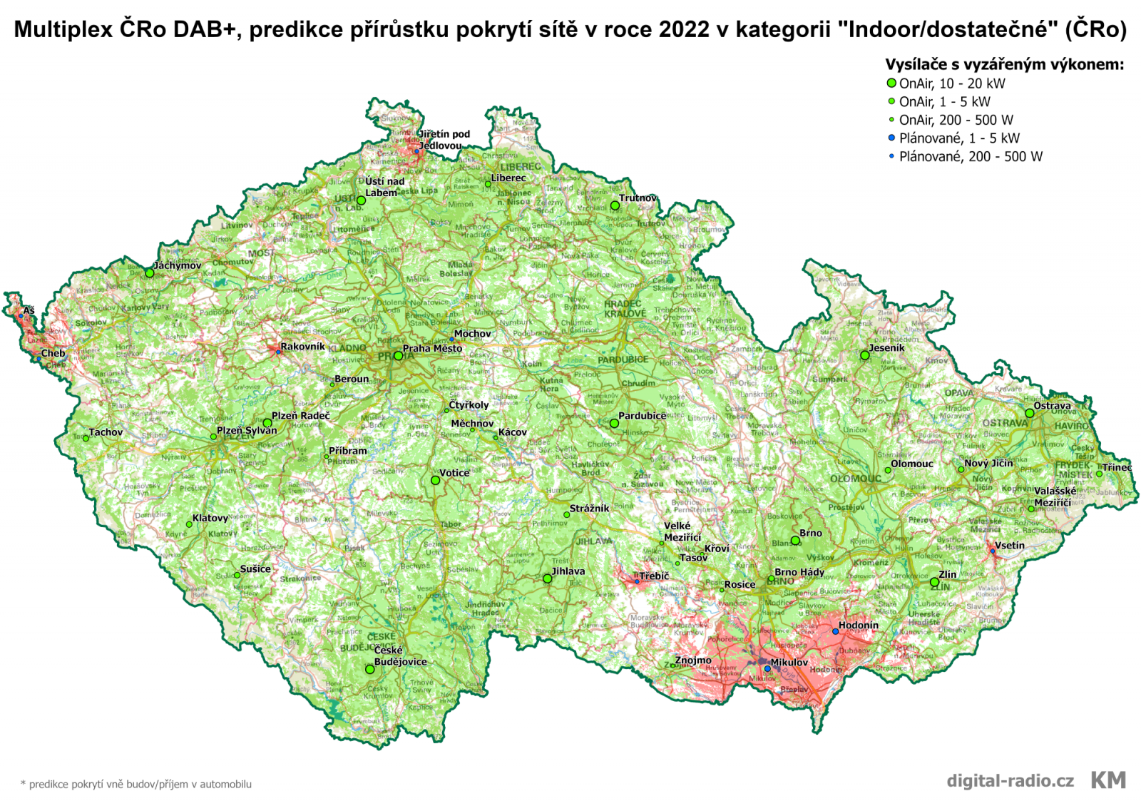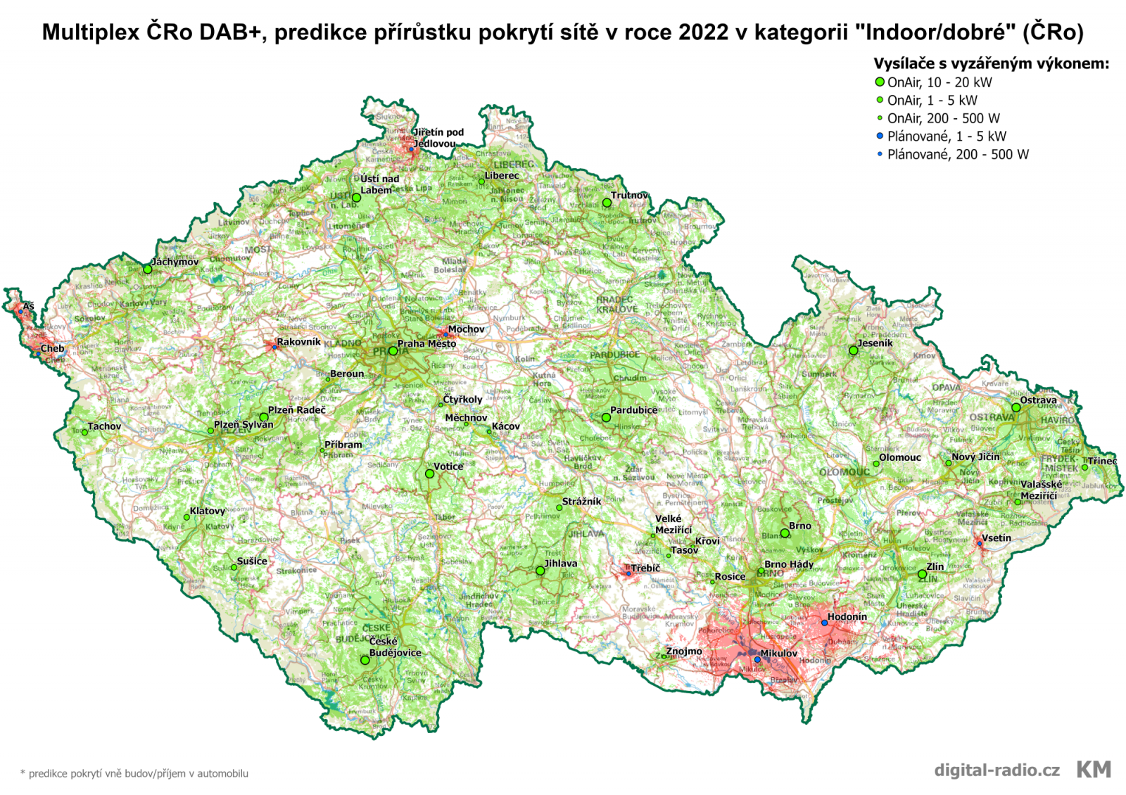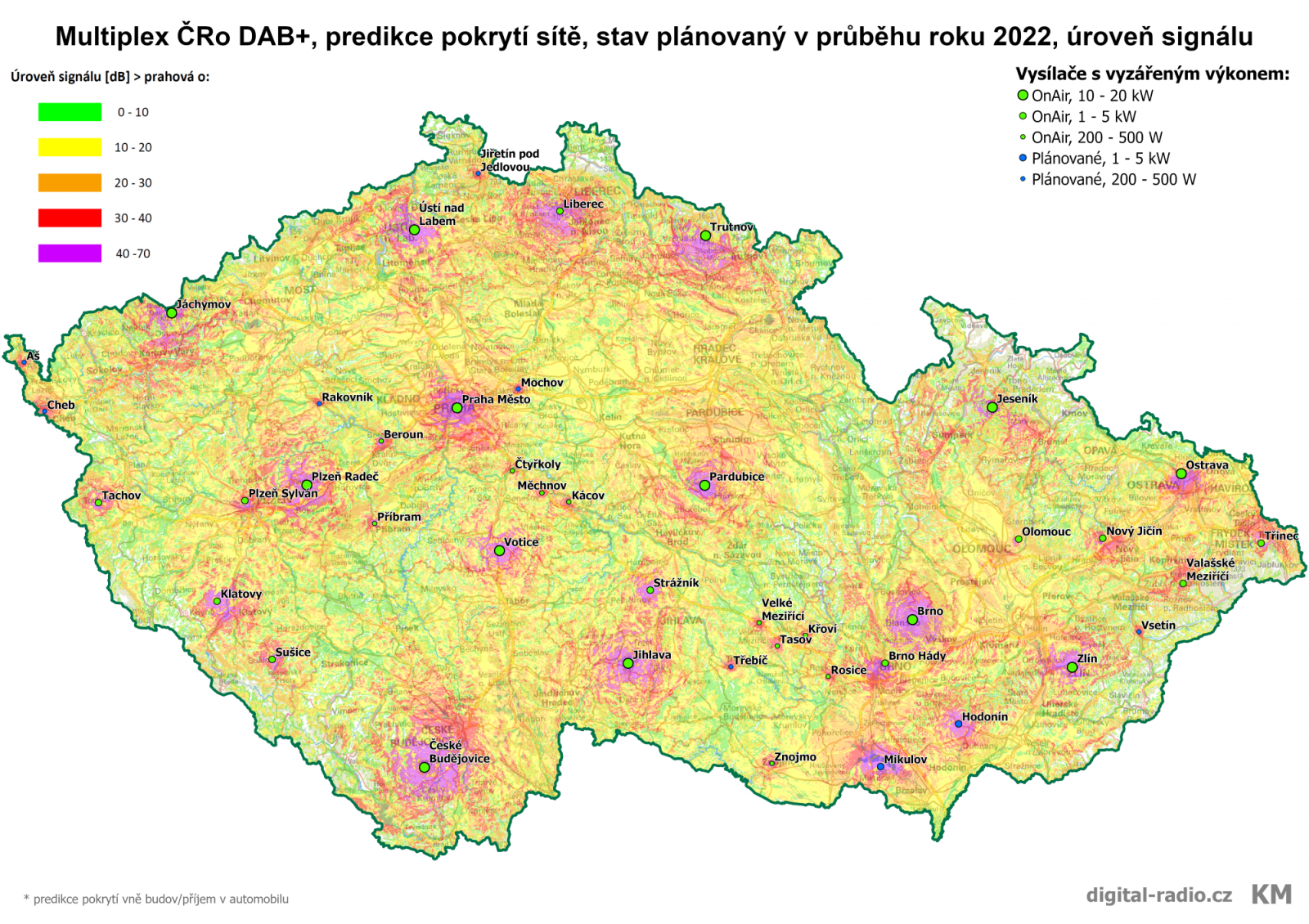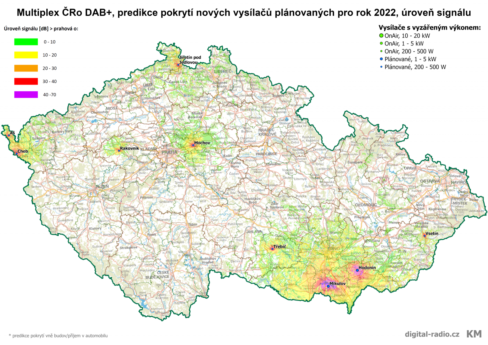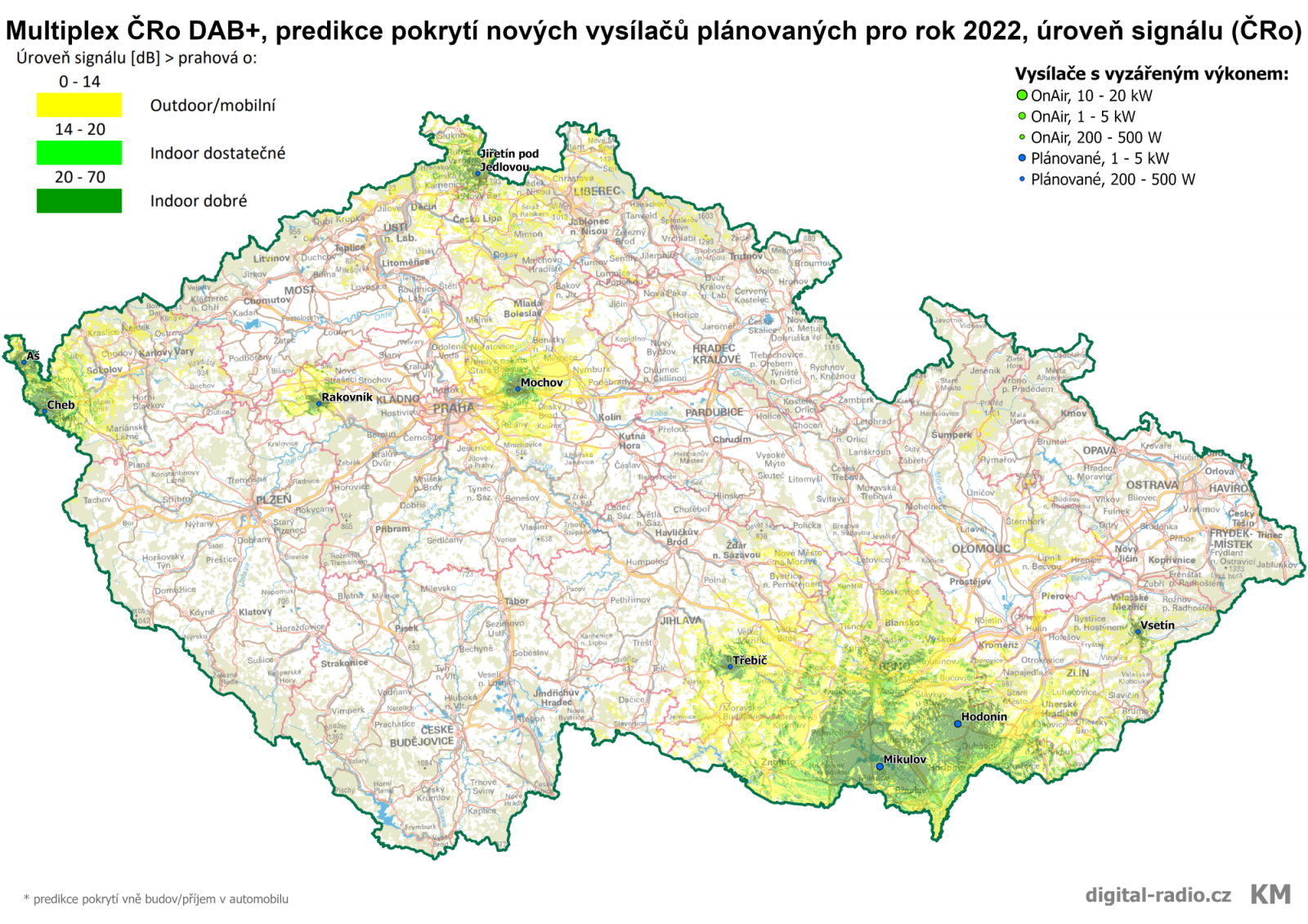 Multiplex ČRo DAB+, predikce pokrytí nových vysílačů plánovaných pro rok 2022, úroveň signálu