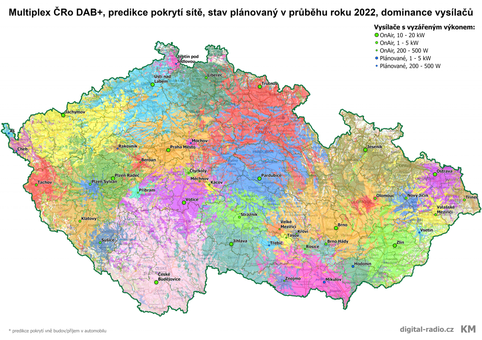 Multiplex ČRo DAB+, predikce pokrytí sítě – dominance vysílačů