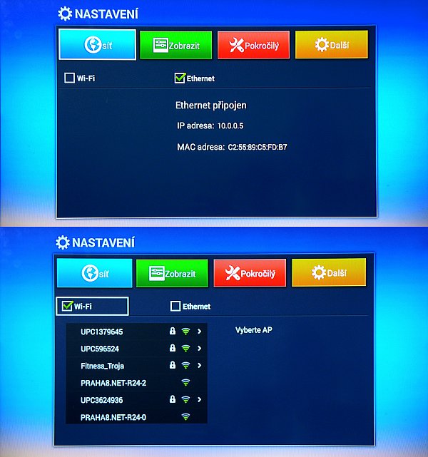 Při instalaci sítě si můžeme vybrat mezi pevným připojením nebo integrovanou Wi-Fi.