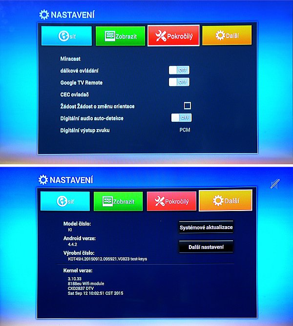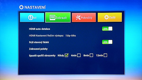 Rozlišení na videovýstupu HDMI můžeme nechat na autodetekci, nebo si nastavit rozlišení až do 1080p. Obraz přijímač zpracovává ve výborné kvalitě, je kontrastní, barevně vyvážený. Černá je opravdu černá a bílá není přepálená. Pokud bych dal linuxovým přijímačům známku za 1, tento androidový by dostal 1-.