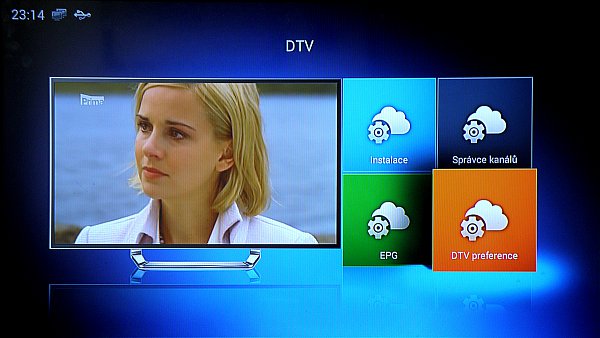 • poslední položkou jsou DTV preference, kde najdeme obecná nastavení včetně zobrazení titulků, poměru stran obrazu, přepínání kanálů, jazyk zvuku, titulků, nastavení PVR apod.