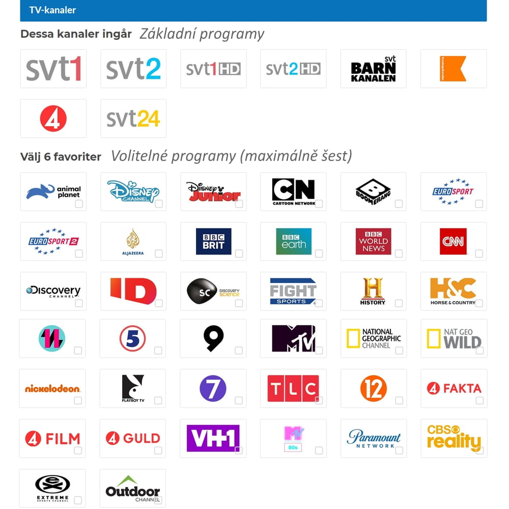 Platforma IPSweden je také partnerem Framtidens Bredband (Broadband budoucnosti), kde poskytuje dotovaný balíček služeb v rámci nabídky IP Sweden Choose yourself (IP SWEDEN VÄLJ SJÄLV). 100% dotace se týká jak pořízení zařízení (v ceně 1000 SEK), tak měsíčního poplatku 99 SEK a je nutno o ni požádat elektronickým formulářem. Poplatek pokrývá programy švédské televize SVT jak v SD, tak HD rozlišení + 6 programů z placené nabídky dle výběru, viz tabulka níže. Nabídka je ošetřena závazkem 12 měsíců.
