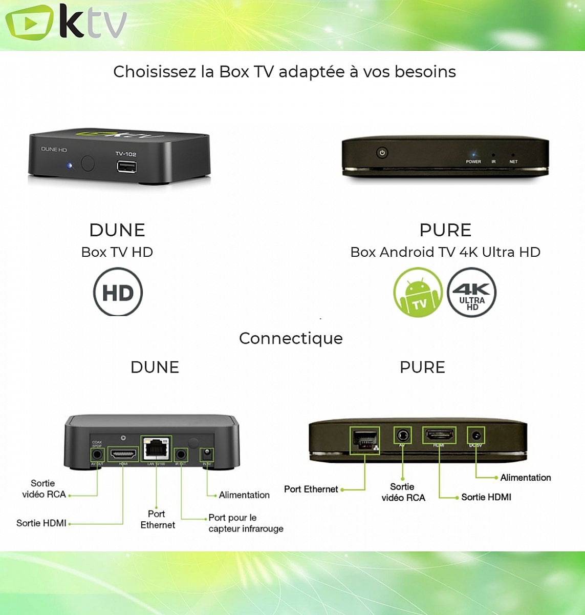 Mezi aktivitami DUNE HD v minulosti je i dodávka přístrojů pro francouzskou K-TV. Zde šlo o model TV-102 (aktuálně již nenabízený) s logem operátora. Tento model se prodával i v ČR. Společnost aktuálně používá nový 4K box „Pure“ s certifikovanou Android TV.