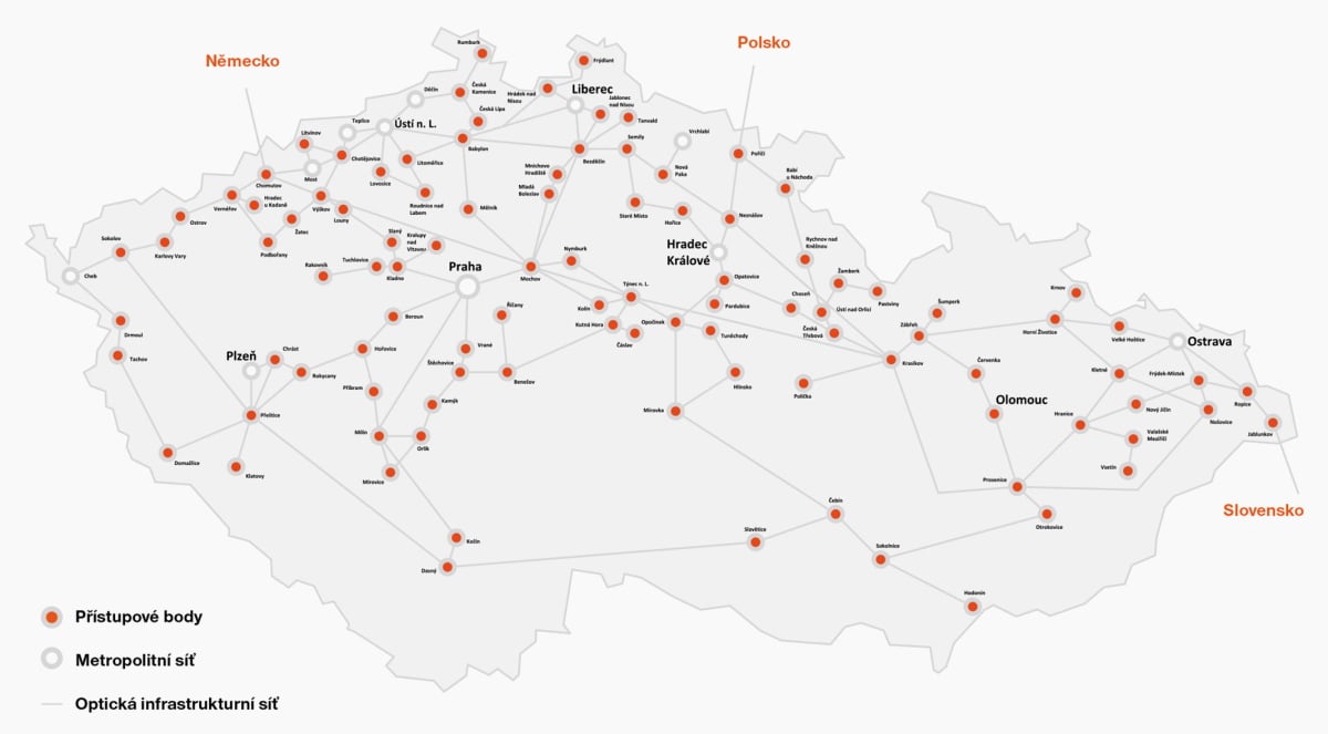 Mapa optické sítě Telco Pro Services