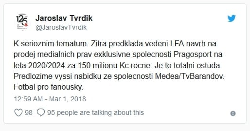 Zhruba před měsícem rozčeřila mediální vlny úsměvná kauza shrnutá větou, že Jaroslav Tvrdík chce fotbalovou ligu na neplacené televizi…