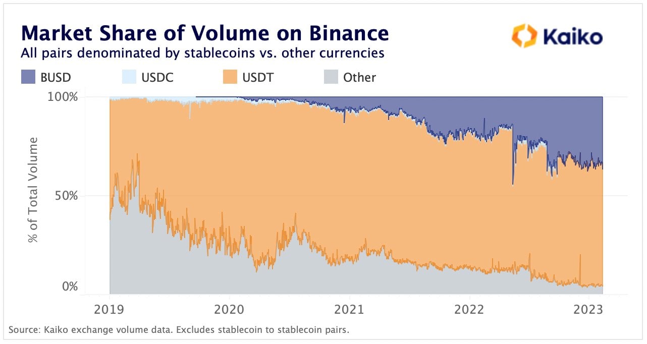 Ještě v září 2022 přitom burza uzavřela na své platformě stablecoinové trhy USDC, TUSD a USDP právě ve prospěch BUSD, což vícero hlasů z trhu označilo za antikonkurenční chování. Na burze tak vedle vlastního stablecoinu, nad kterým se nyní pomalu smráká, zůstal decentralizovaný DAI, se kterým se provádí jen nepatrný zlomek obchodování, a Tether.