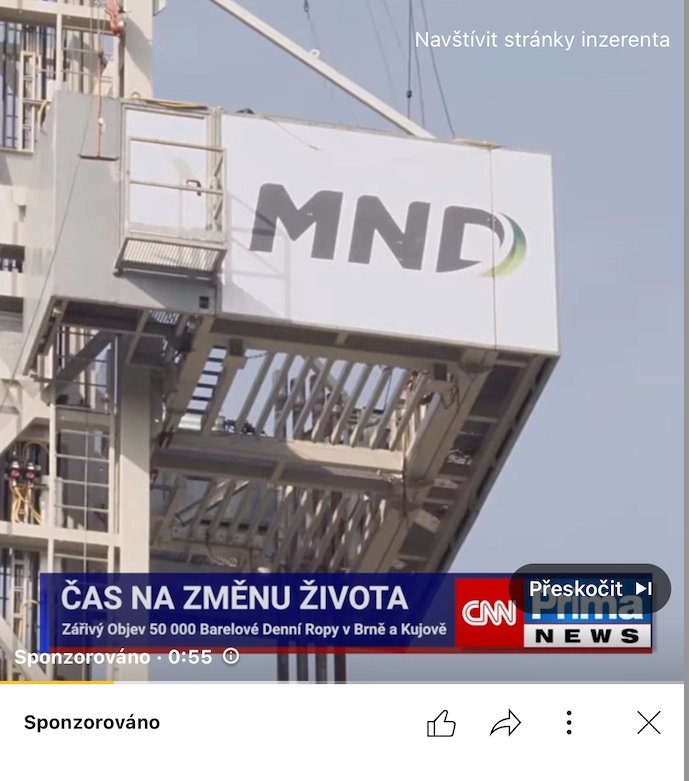 Jindy na mě zas vyskočí podvodné video přestrojené za zpravodajství CNN Prima NEWS, které přináší skvělou zprávu „o zářivém objevu 50 000 barelové denní ropy v Brně a Kujově“. Nenechám se zmást, že Kujov v Česku neexistuje (podvodný kyberšmejd myslí zřejmě Kyjov) a „běžím investovat peníze do skvělého obchodu“.