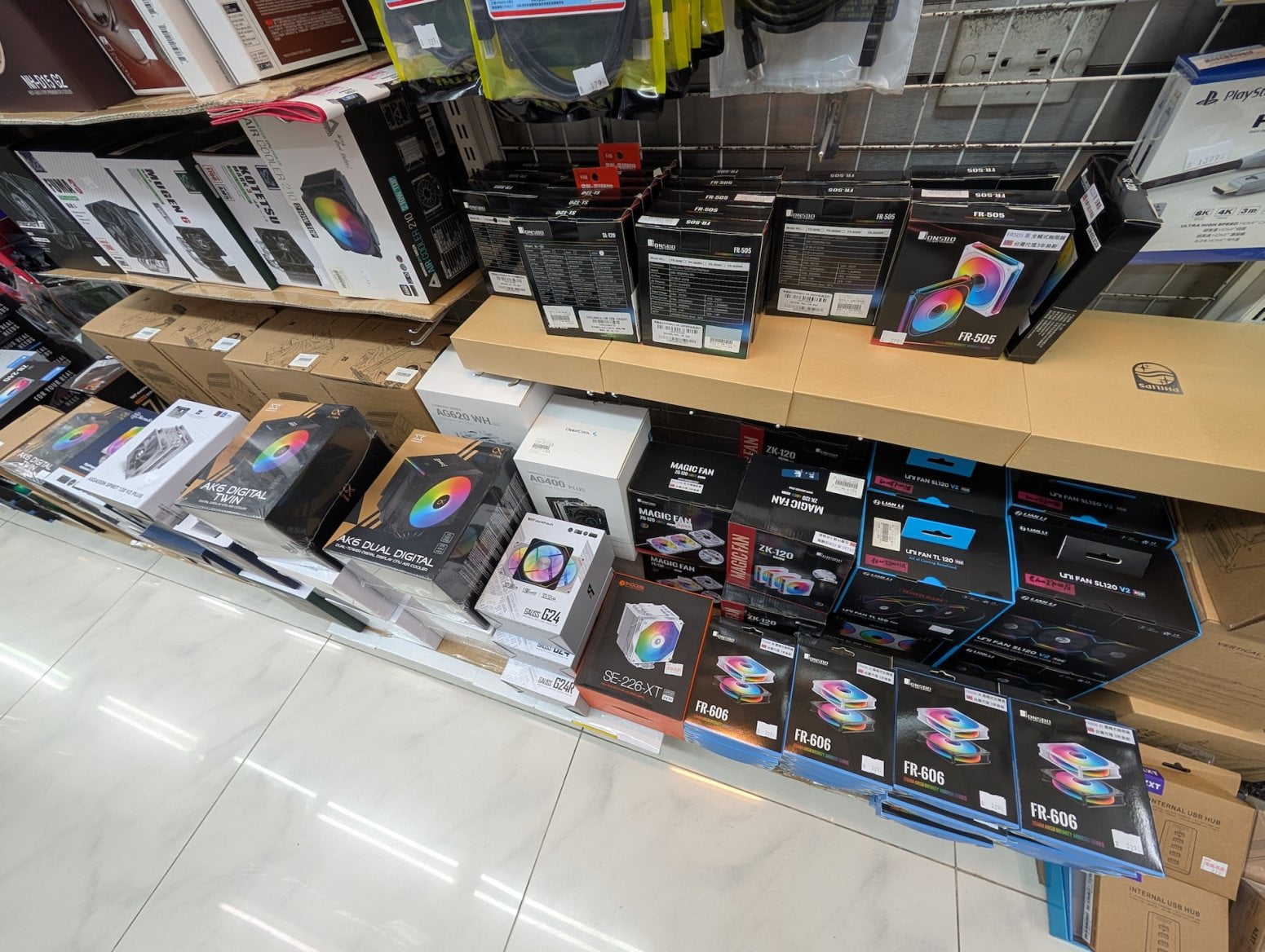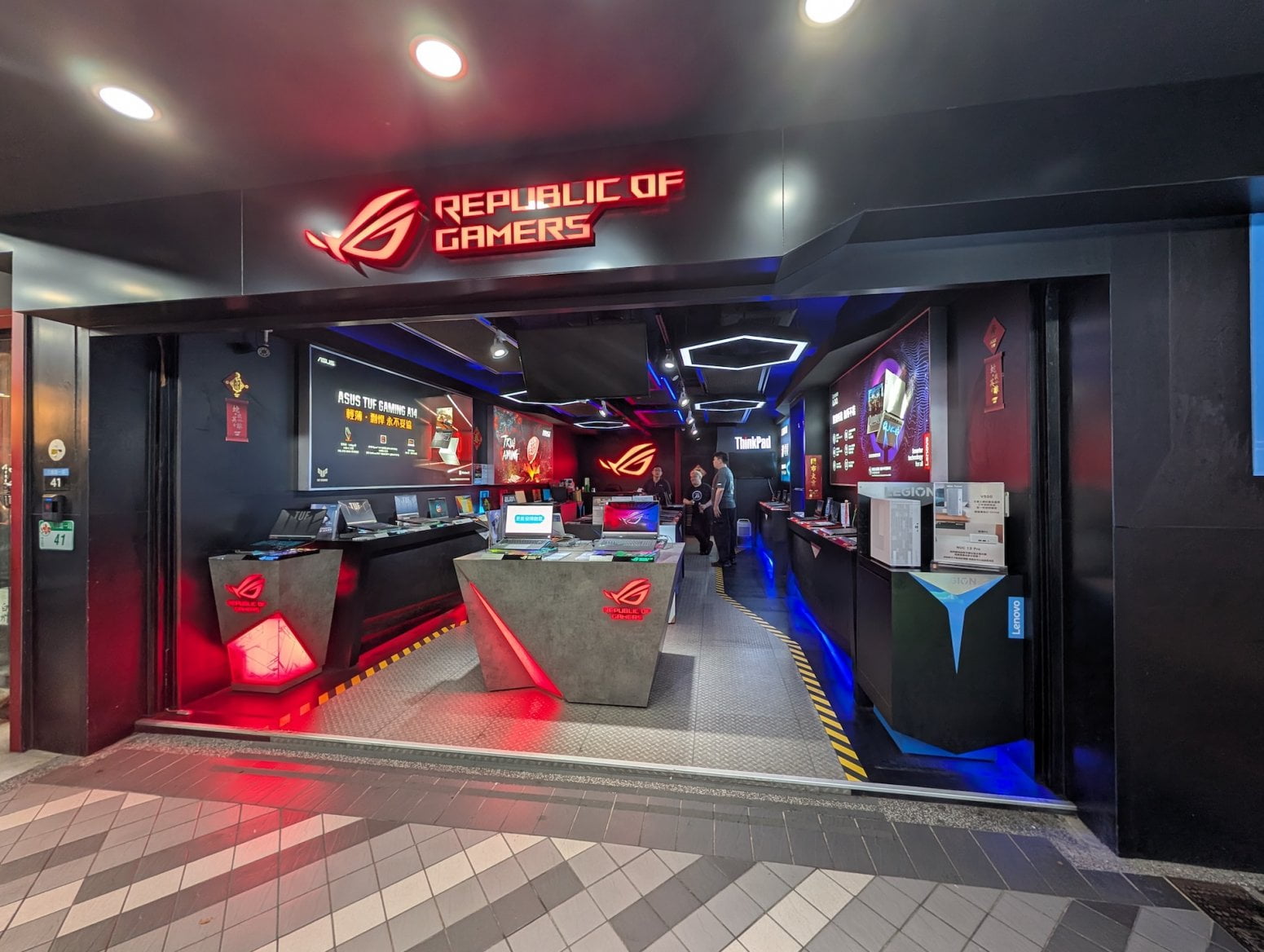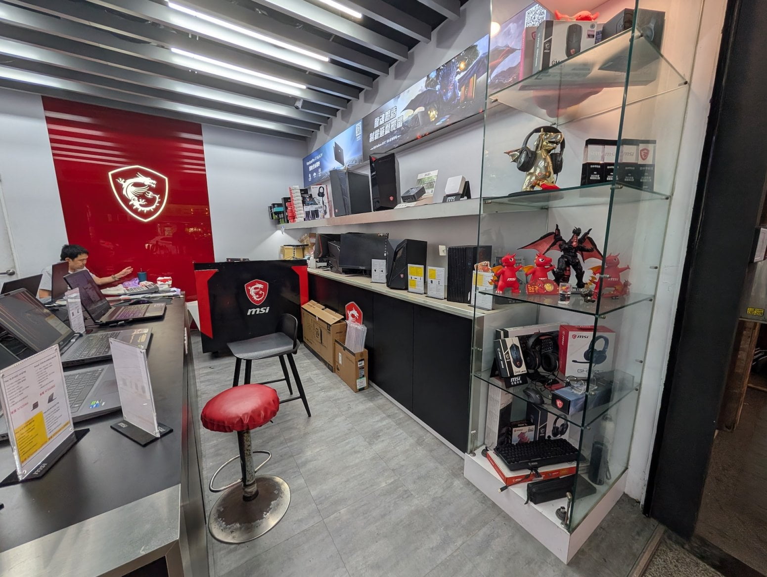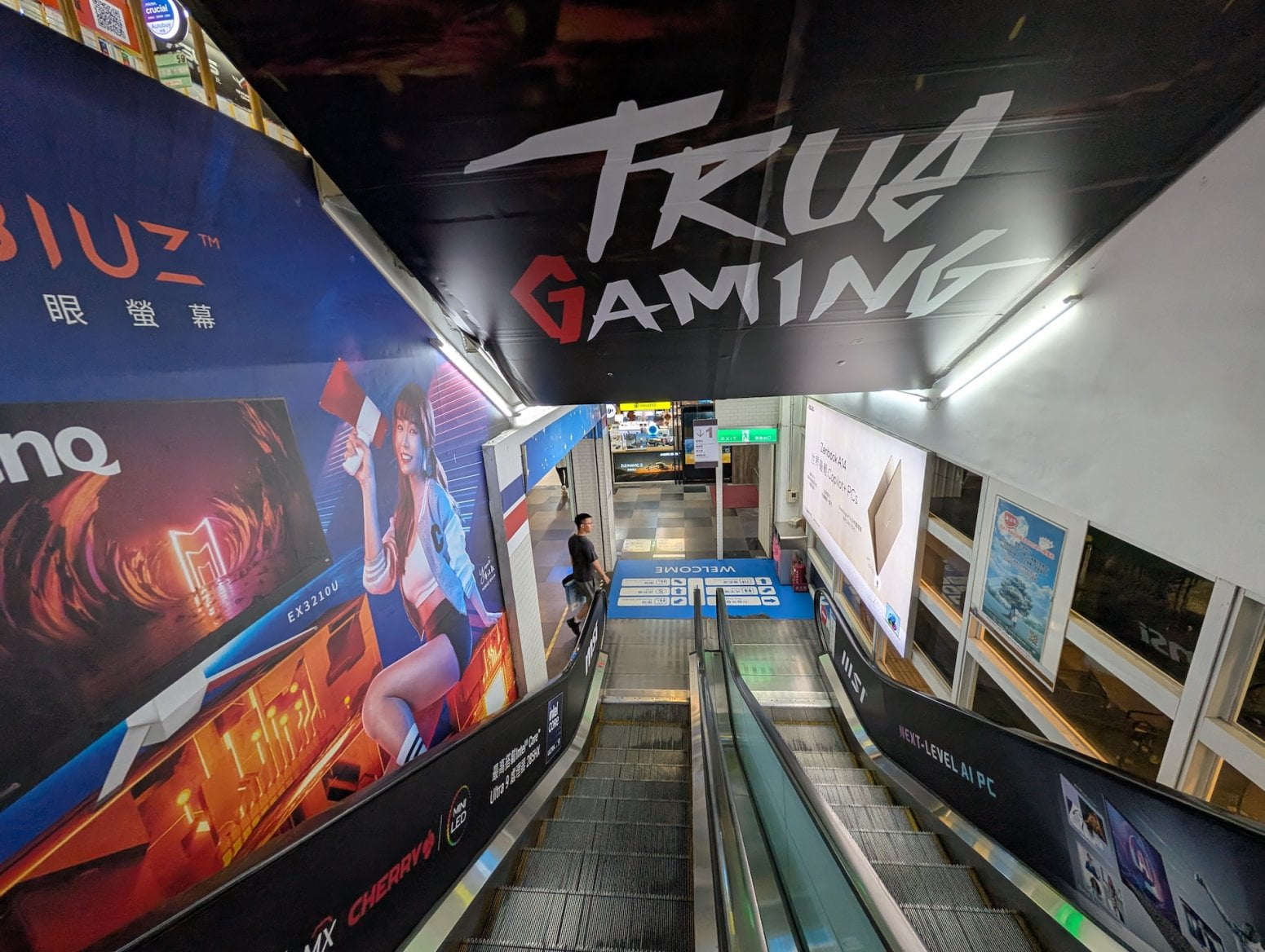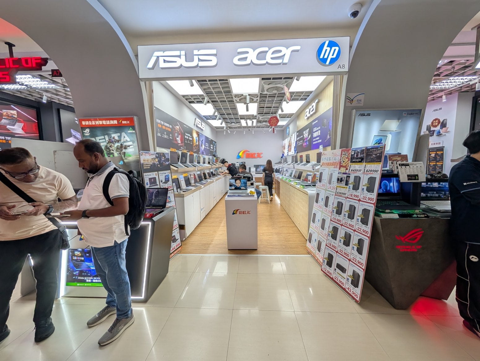 Roli hraje i nová budova Digital Plazy. To už je navoněný, moderní a přespříliš klimatizovaný obchoďák. Obchody zde provozují primárně samotné značky, každá zde má něco jako vlastní kopii Apple Storu. Seznam je dlouhý, jde o brandy typu Asus, Acer, Lenovo, Xiaomi, Casio, Nikon, HTC, Realme, Dell, Gigabyte, MSI a mnoho dalších. Našel jsem tam i obchod prodávající tento herní trůn.