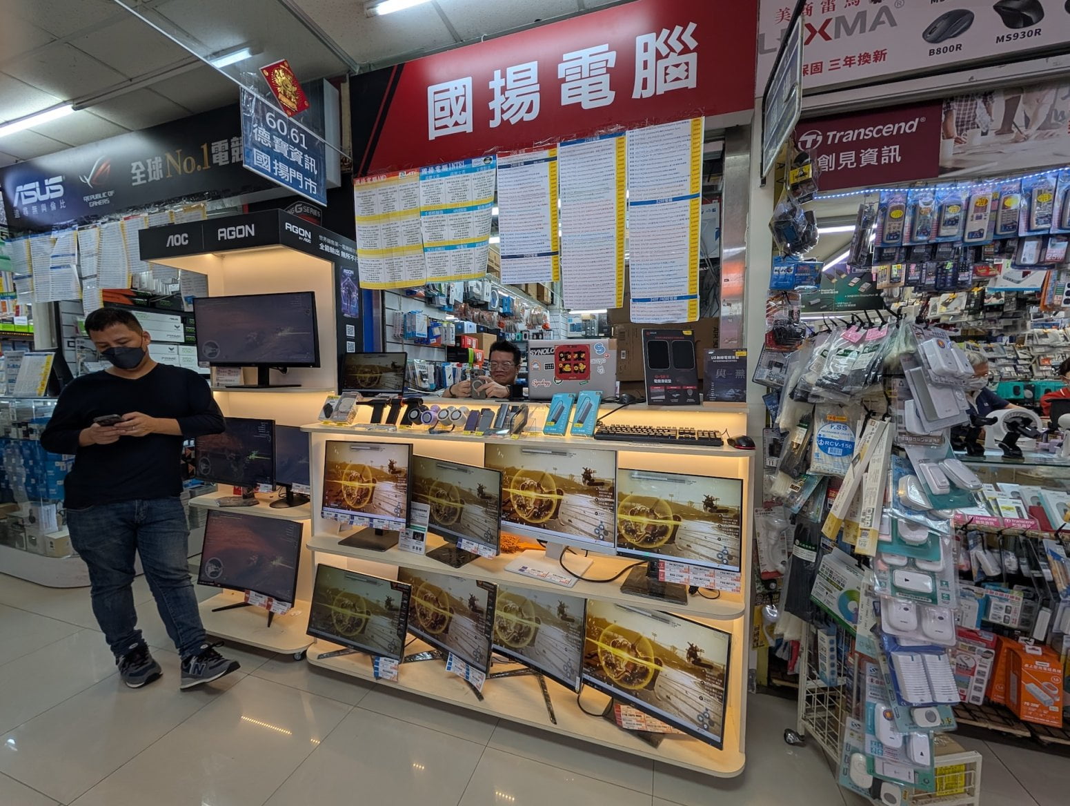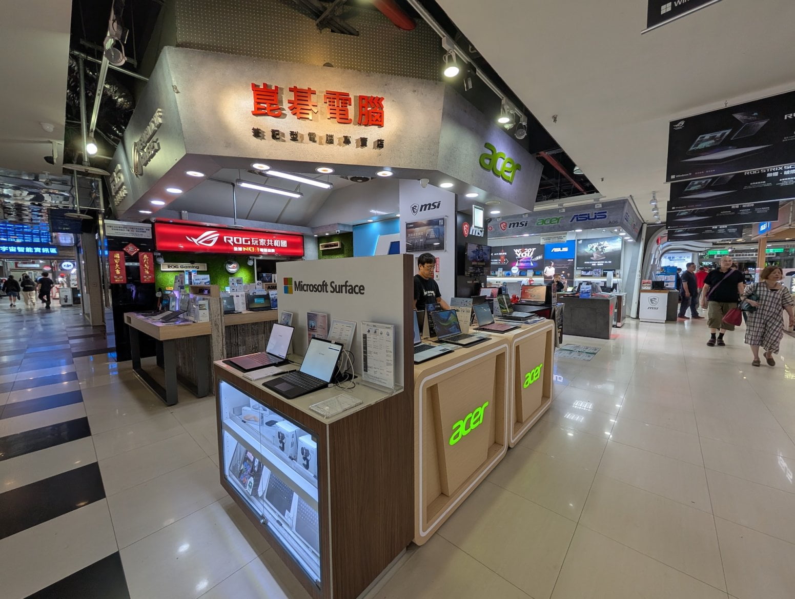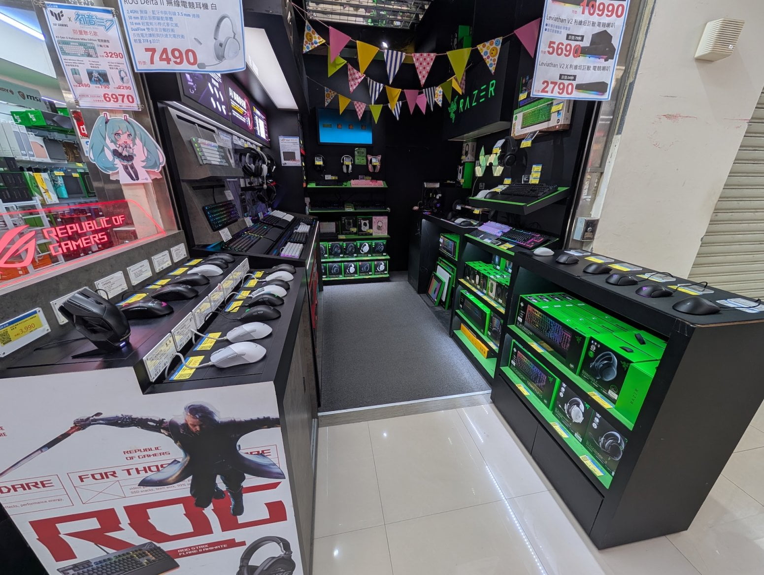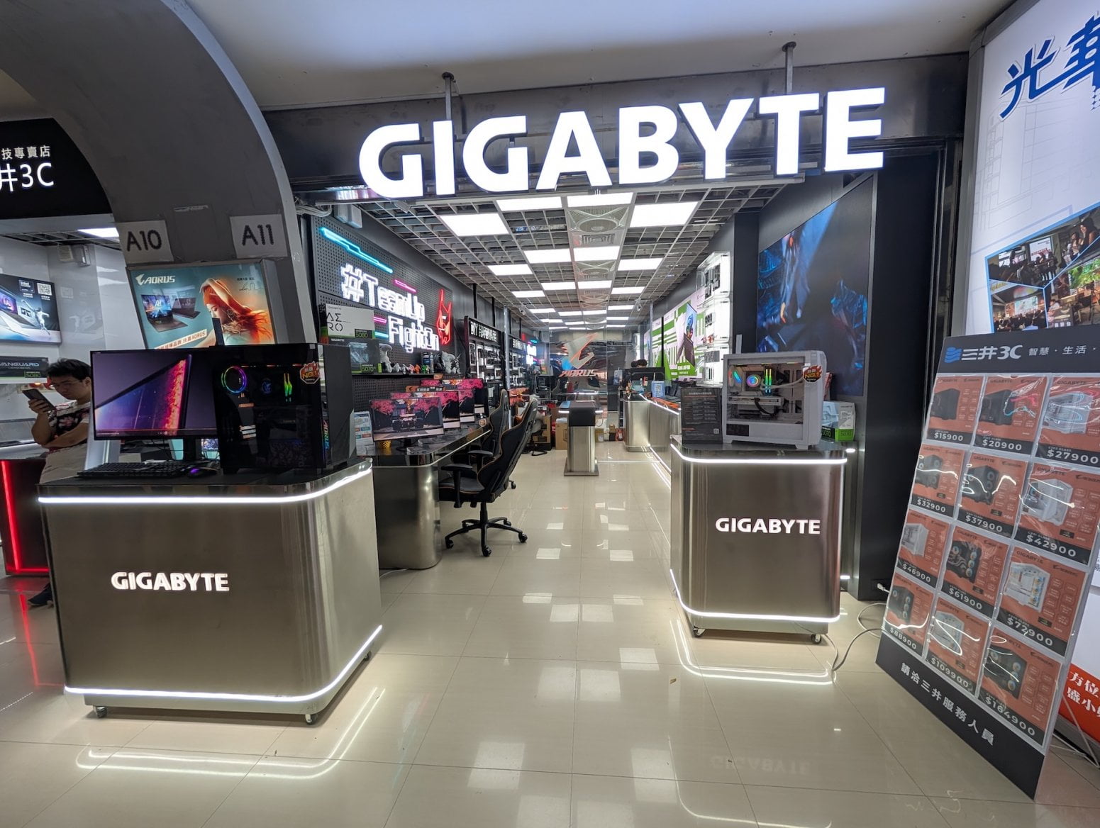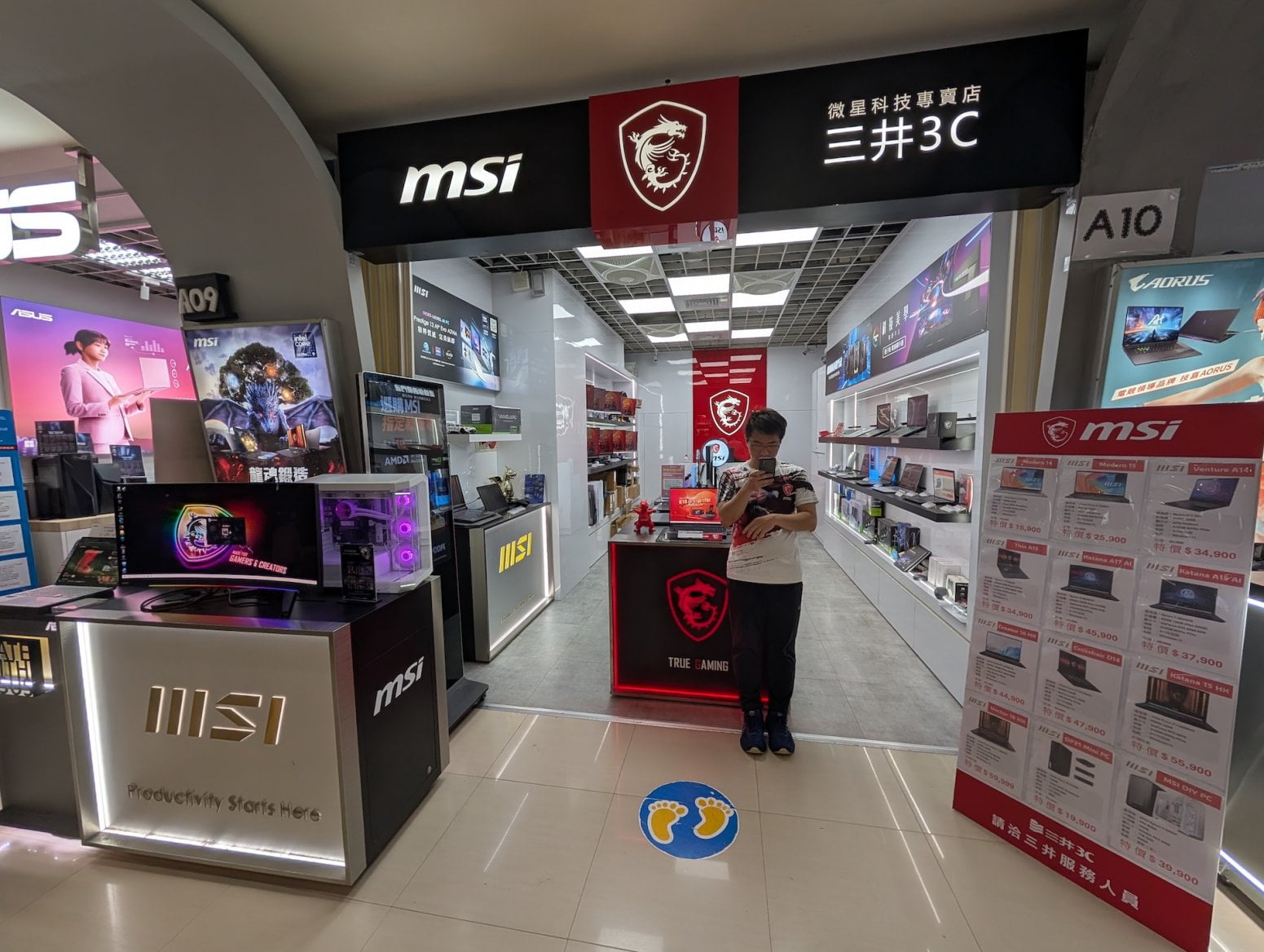 Roli hraje i nová budova Digital Plazy. To už je navoněný, moderní a přespříliš klimatizovaný obchoďák. Obchody zde provozují primárně samotné značky, každá zde má něco jako vlastní kopii Apple Storu. Seznam je dlouhý, jde o brandy typu Asus, Acer, Lenovo, Xiaomi, Casio, Nikon, HTC, Realme, Dell, Gigabyte, MSI a mnoho dalších. Našel jsem tam i obchod prodávající tento herní trůn.