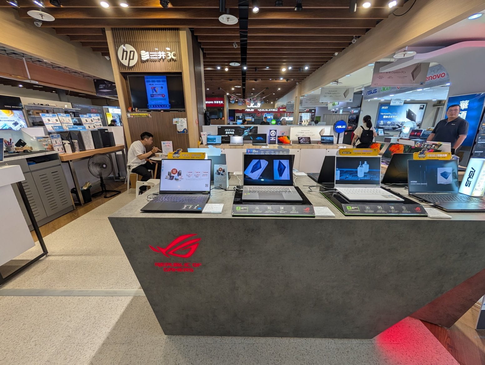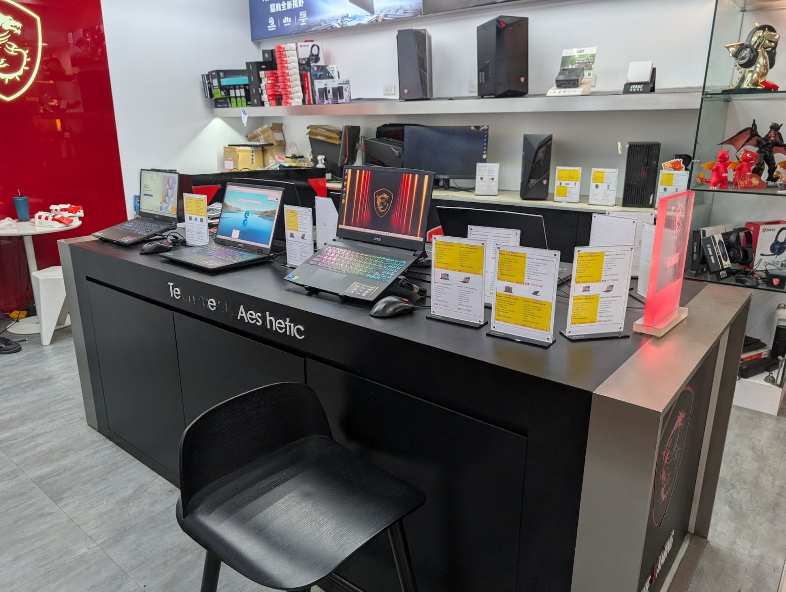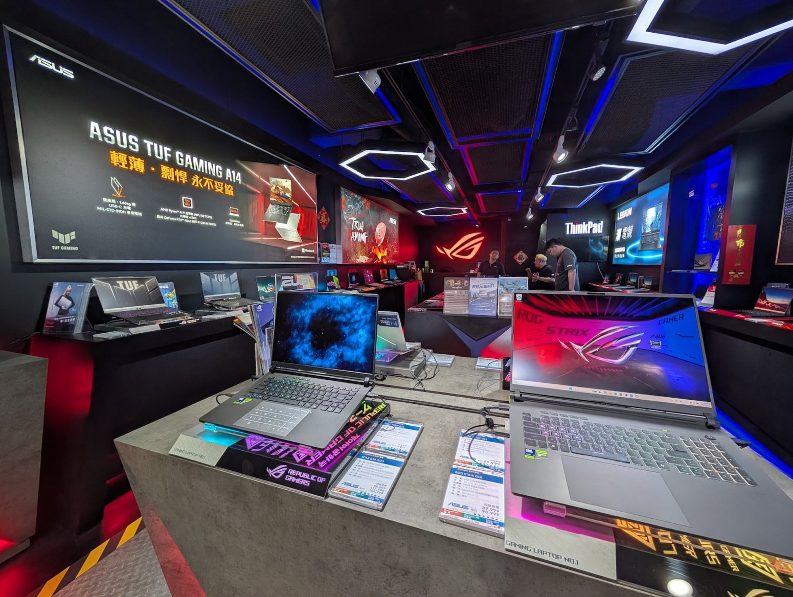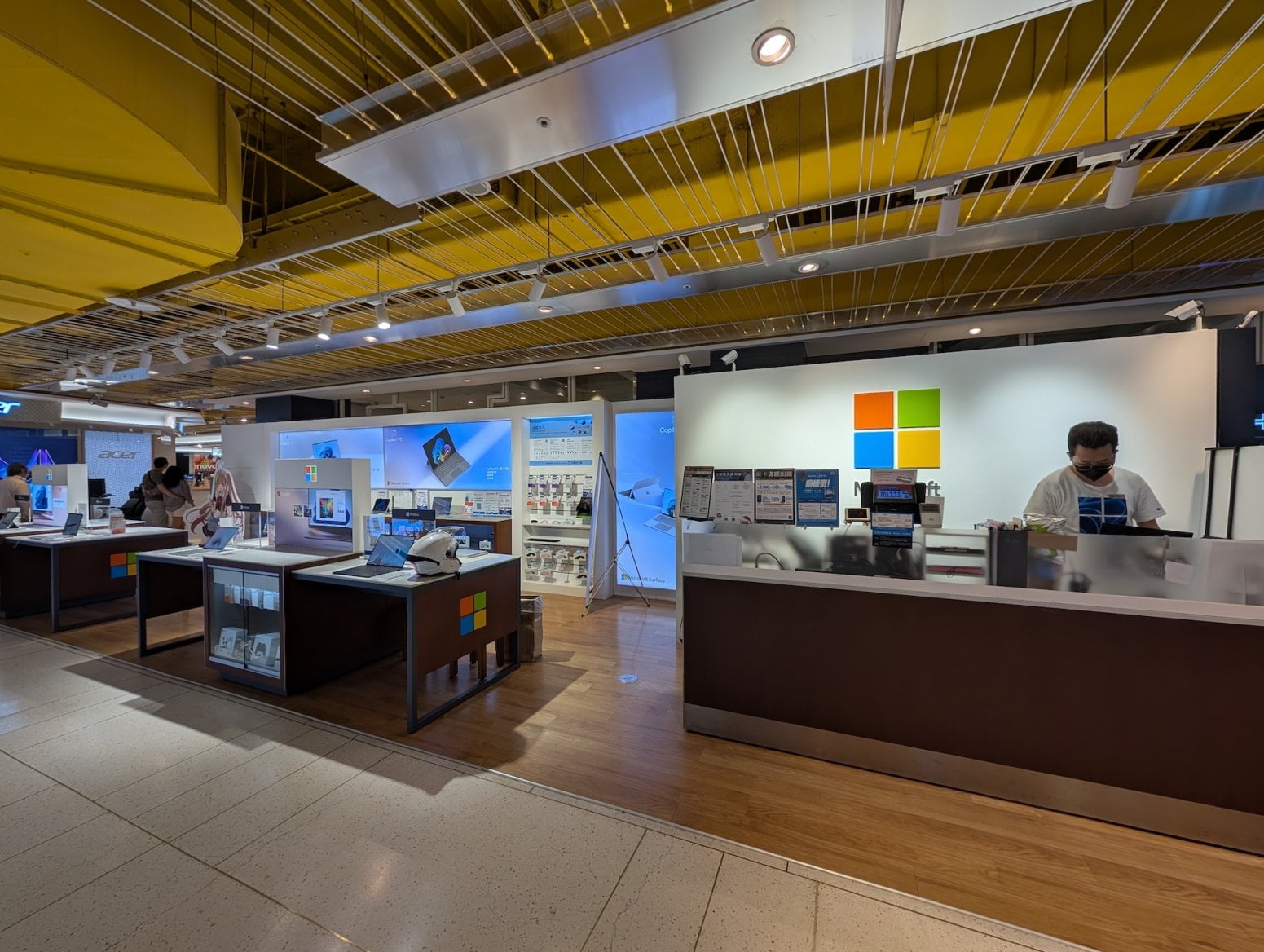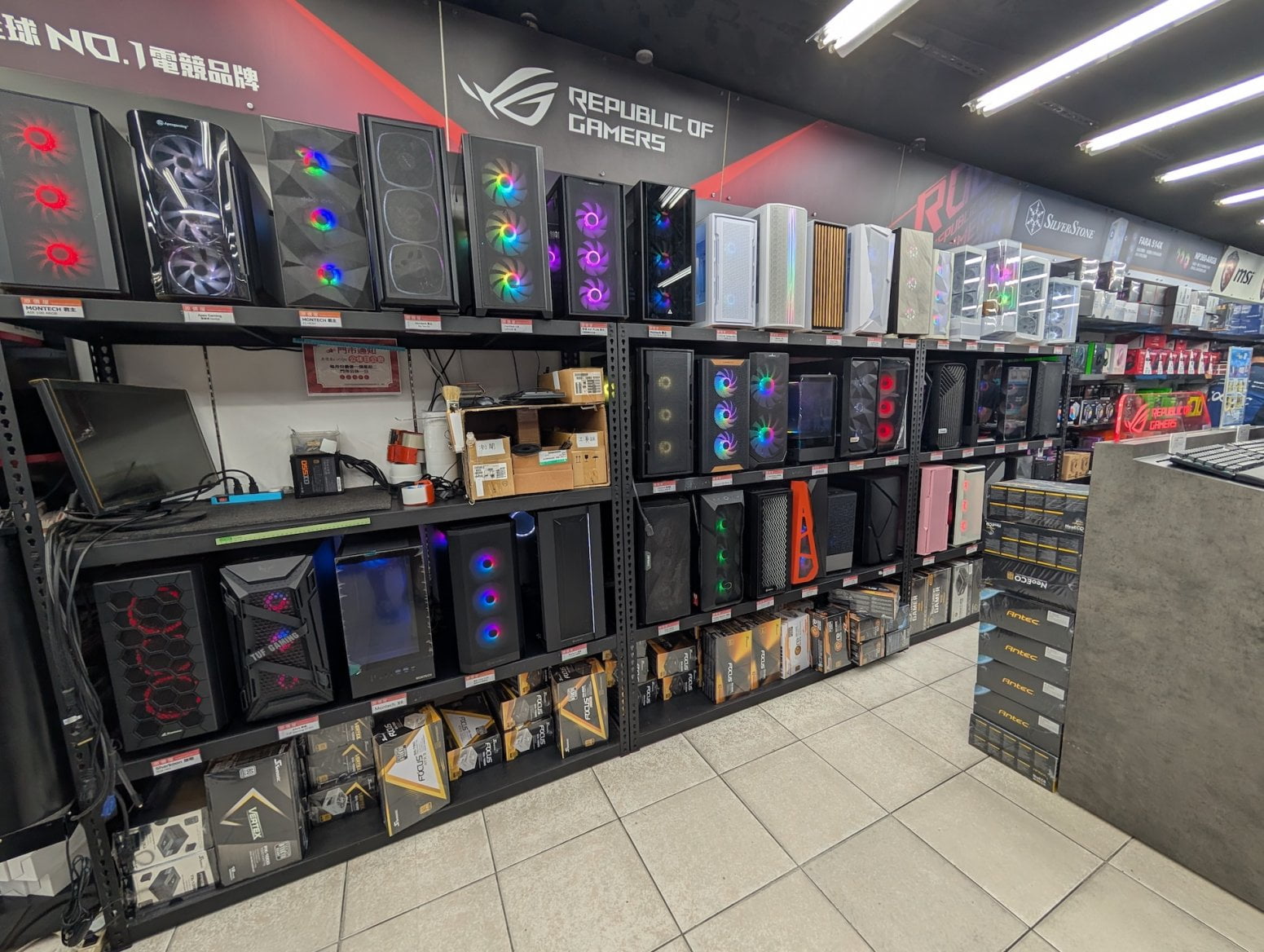 Roli hraje i nová budova Digital Plazy. To už je navoněný, moderní a přespříliš klimatizovaný obchoďák. Obchody zde provozují primárně samotné značky, každá zde má něco jako vlastní kopii Apple Storu. Seznam je dlouhý, jde o brandy typu Asus, Acer, Lenovo, Xiaomi, Casio, Nikon, HTC, Realme, Dell, Gigabyte, MSI a mnoho dalších. Našel jsem tam i obchod prodávající tento herní trůn.
