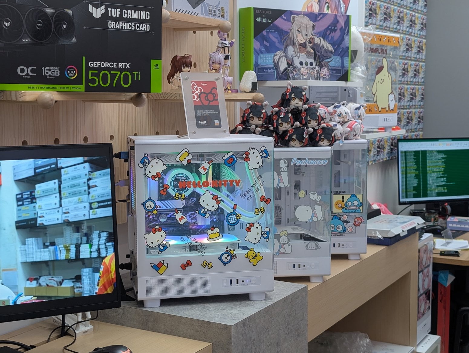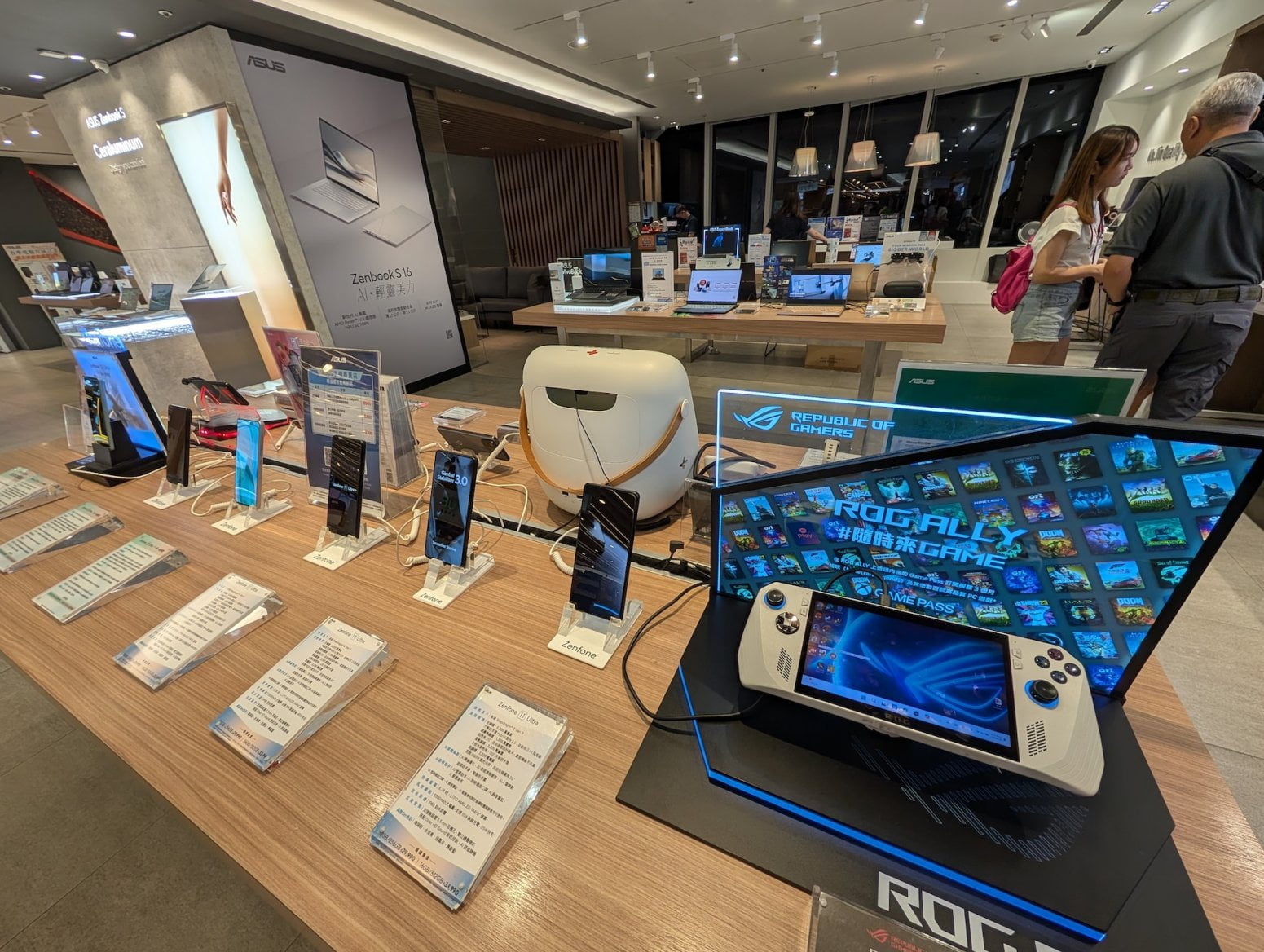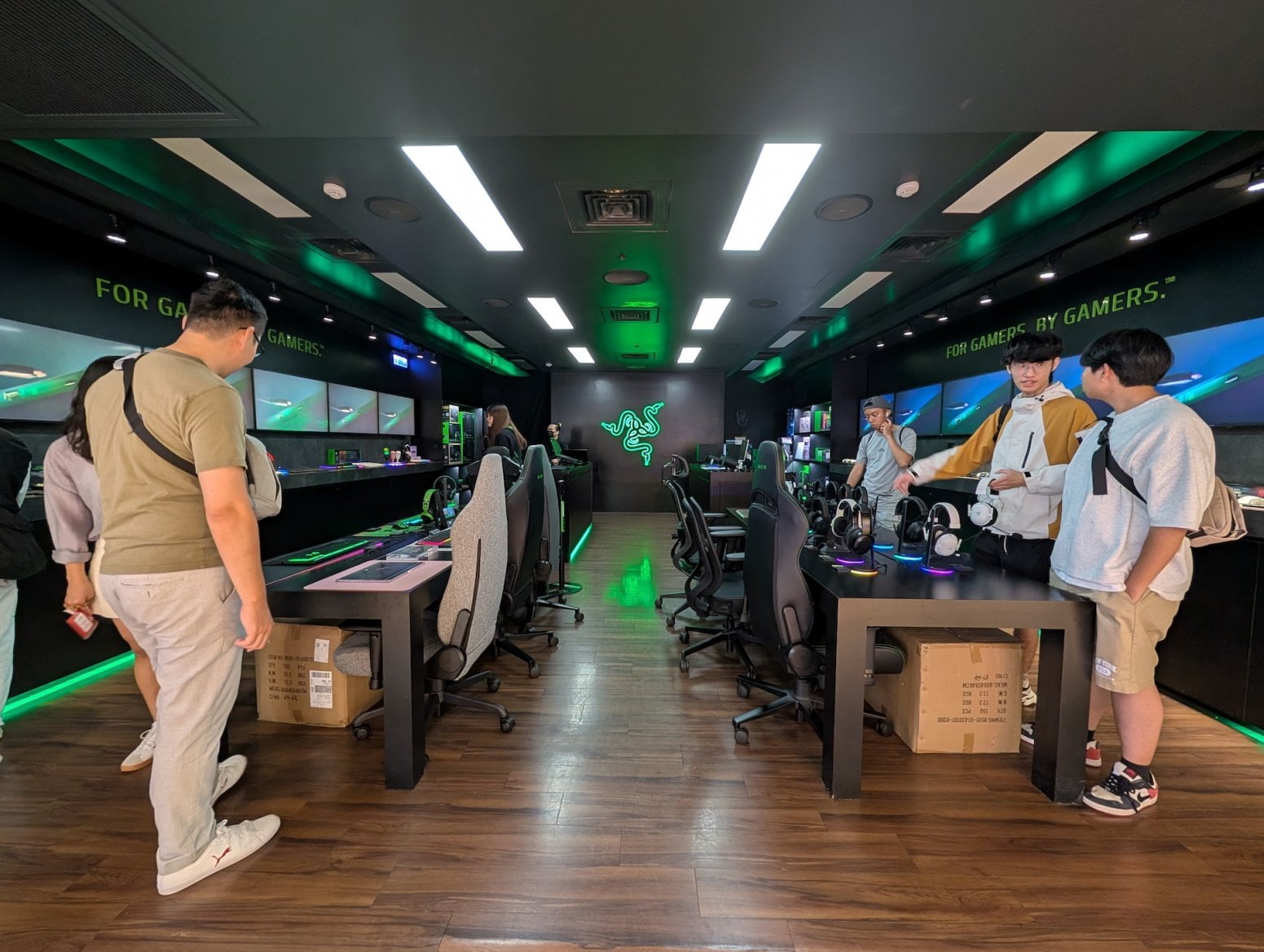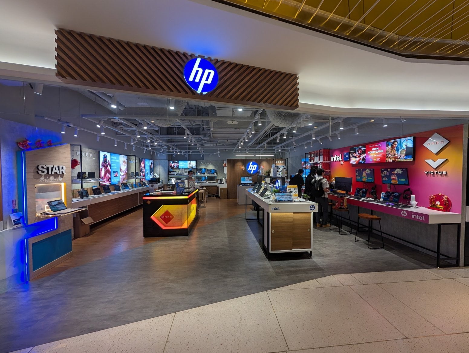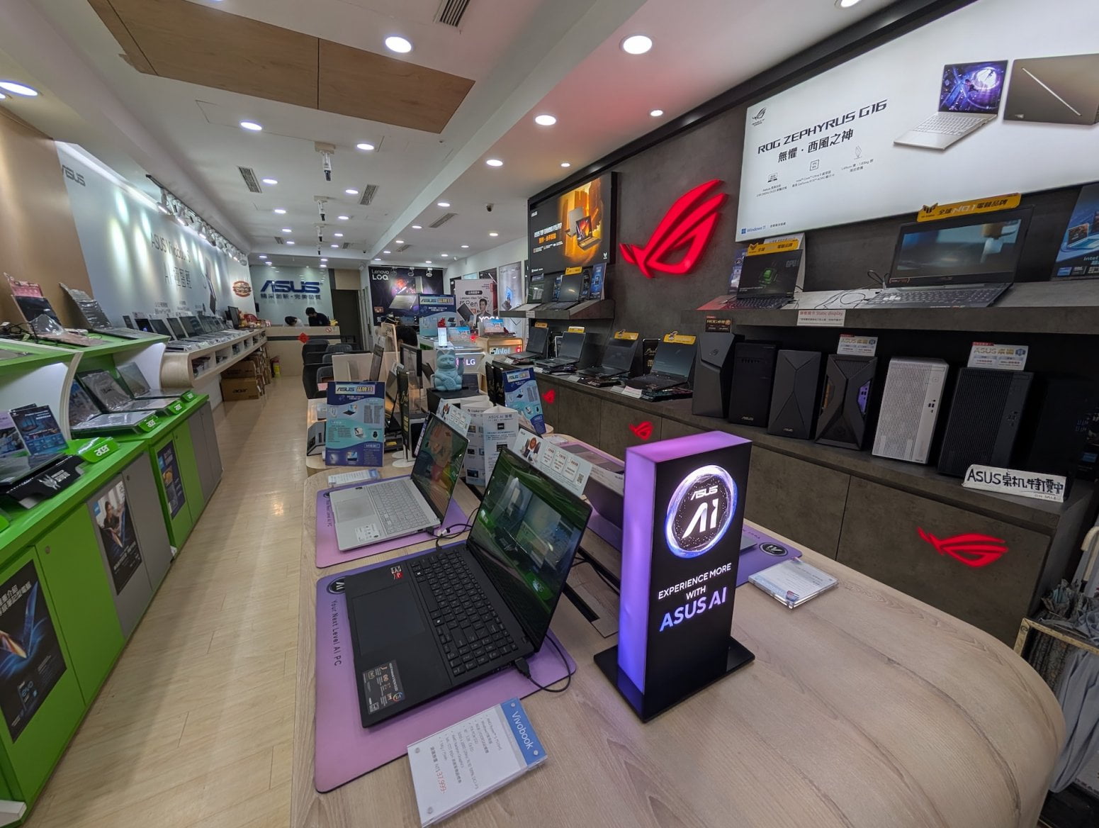 Roli hraje i nová budova Digital Plazy. To už je navoněný, moderní a přespříliš klimatizovaný obchoďák. Obchody zde provozují primárně samotné značky, každá zde má něco jako vlastní kopii Apple Storu. Seznam je dlouhý, jde o brandy typu Asus, Acer, Lenovo, Xiaomi, Casio, Nikon, HTC, Realme, Dell, Gigabyte, MSI a mnoho dalších. Našel jsem tam i obchod prodávající tento herní trůn.