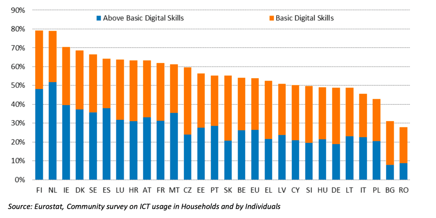Zpráva Evropské komise také konstatuje, že se Česko stále potýká s nedostatkem odborníků na informační a komunikační technologie, a to ve všech sektorech (od veřejné správy, školství i komerčních firem). Podle Eurostatu 76 % českých podniků, které nabíraly nebo se snažily nabrat odborníky na ICT, uvedlo, že mají potíže s obsazením těchto pozic. To je nejvyšší podíl v EU (průměr EU je 55 %). Navzdory relativně vysokému podílu absolventů v oblasti ICT (v ČR to je 5 % vs. 3,9 % v EU) ukazuje průzkum Coding Bootcamp Prague a Techloop, že ekonomika by byla schopna absorbovat dalších 14 000 ICT specialistů.