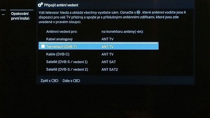 Výrobce ji má trochu speciálnější hned v několika ohledech. Především je komplexnější, i když vám bohužel na závěr setřídění naladěných stanic nenabídne. Specialitkou je třeba to, že se po nabídkách posouváte nikoli šipkou či OK/Enter, ale tlačítkem „rychloposuvu“ vpravo či vlevo (tlačítko je chybně označeno, k čemuž se dostaneme), přičemž někdy musíte nabídku potvrdit OK. Bohužel také nedostanete na výběr, zda chcete vypnout doplňkové titulky brané z teletextu, takže ty jsou po instalaci zcela zbytečně zapnuty.