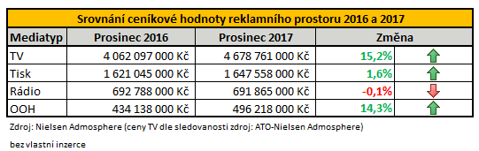 Srovnání ceníkové hodnoty reklamního prostoru za prosinec 2016 a 2017 (klikněte pro zvětšení).