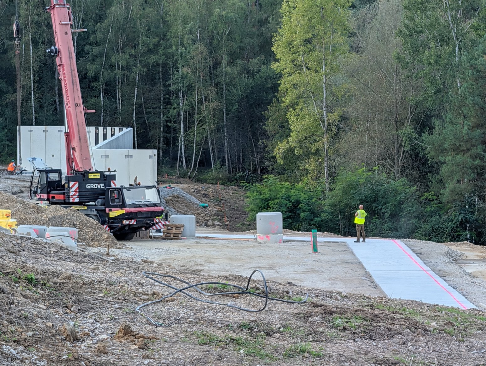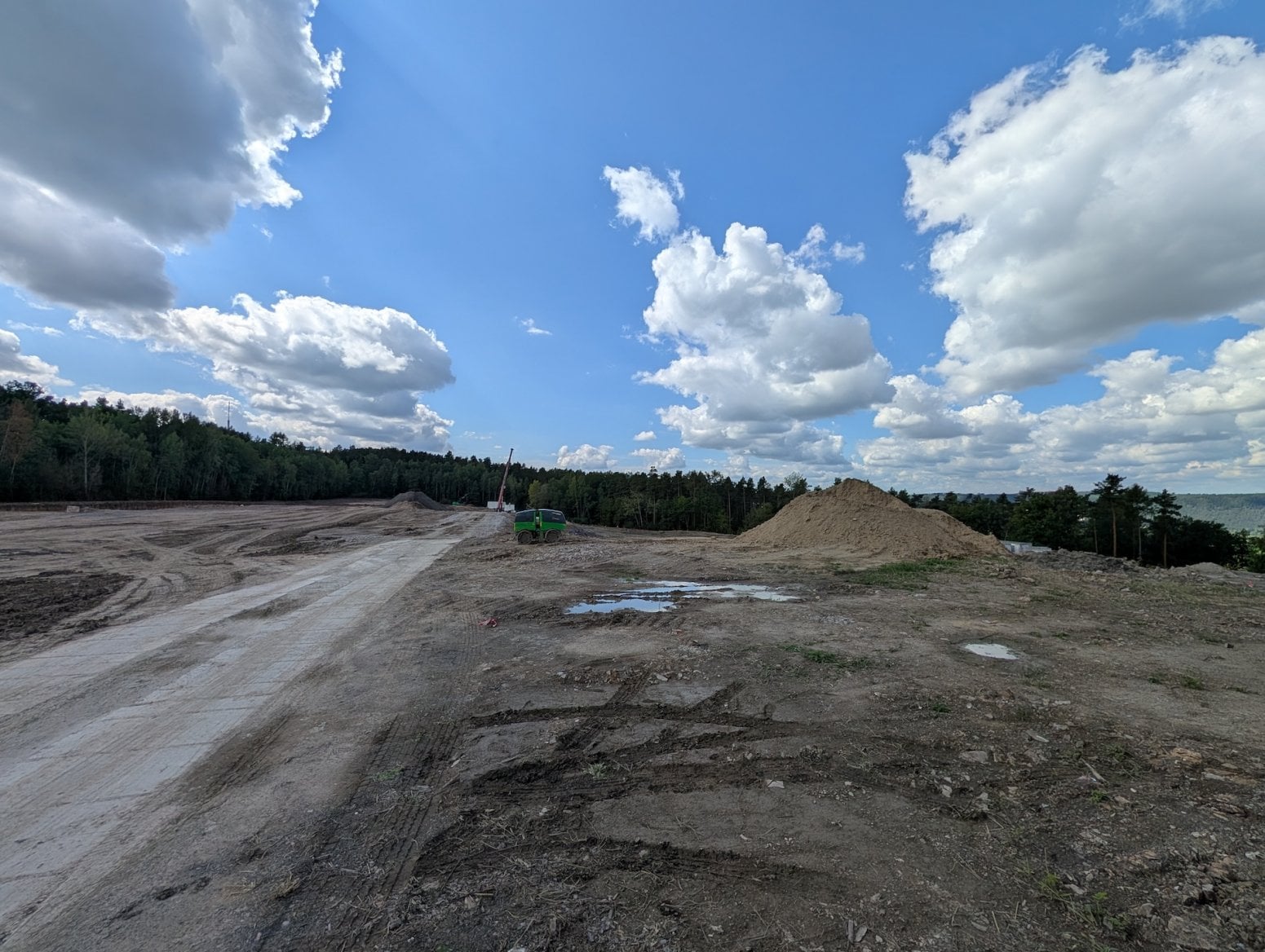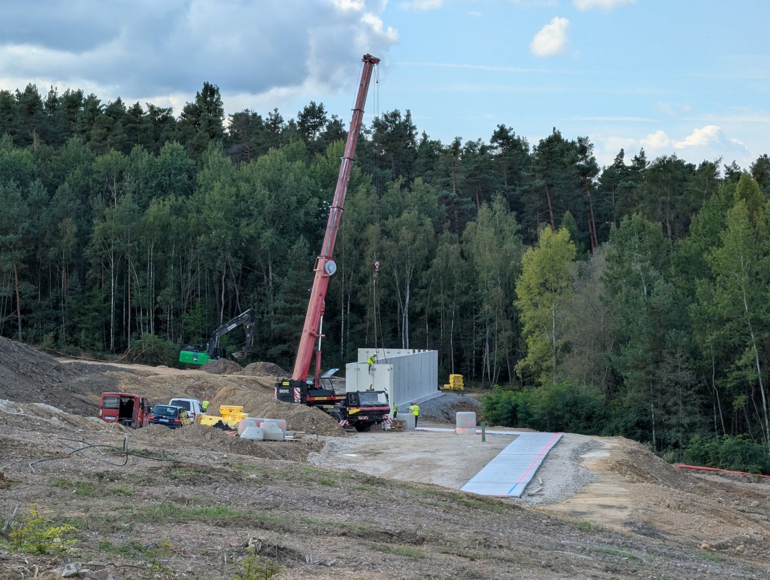 Pozemek Radiokomunikací se nachází mezi lesy nedaleko vysílače Cukrák, který Radiokomunikace rovněž spravují. V současné době na něm probíhají zemní práce jako je úprava terénu, příprava kanalizací a podobně, takže lze na místě vidět zelené bagry a další těžkou techniku od společnosti Jordák.