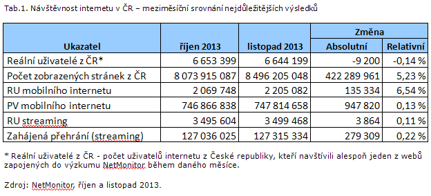 Společnost Gemius dnes vydala zprávu, ve které upozorňuje na rychlý růst mobilních přístupů k českému internetu mezi říjnem a listopadem 2013, tedy mezi posledními měsíci, za které jsou prozatím dostupny auditované zprávy NetMonitoru. (Gemius provozuje NetMonitor na zakázku pro SPIR.)