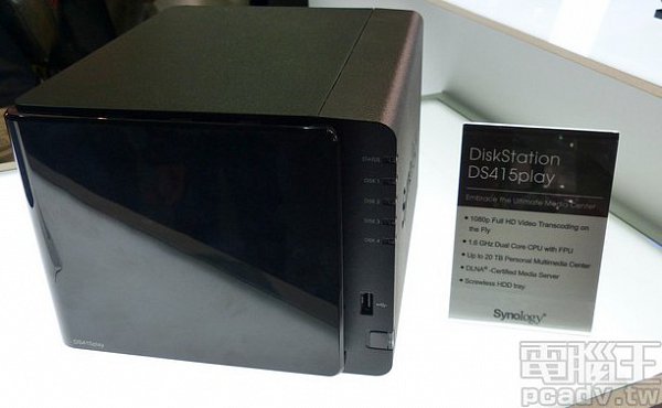 Nový NAS server od Synology, DS415play, nabídne až 20 TB prostoru (!) a přímé přehrávání celé řady audio a video formátů, včetně dekódování 1 080p, tedy progresivního Full HD, v reálném čase. Očekávat také můžeme procesor s dvojím jádrem doplněný jednotkou s plovoucí čárkou, USB 3.0, certifikované DLNA a disky vyměnitelné bez potřeby šroubováku.