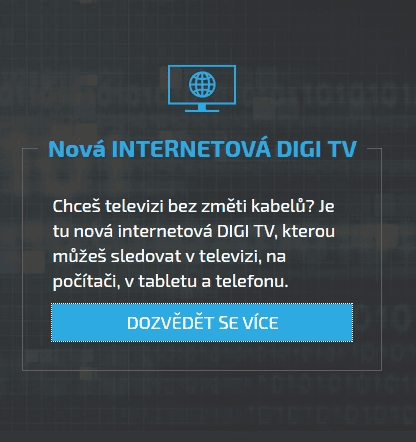 Na svém facebookovém profilu uvedla společnost Digi TV Czech Republic, že spuštění služby internetové televize plánujeme během letošního léta. Podrobnější informace budou brzy zveřejněny na našem webu