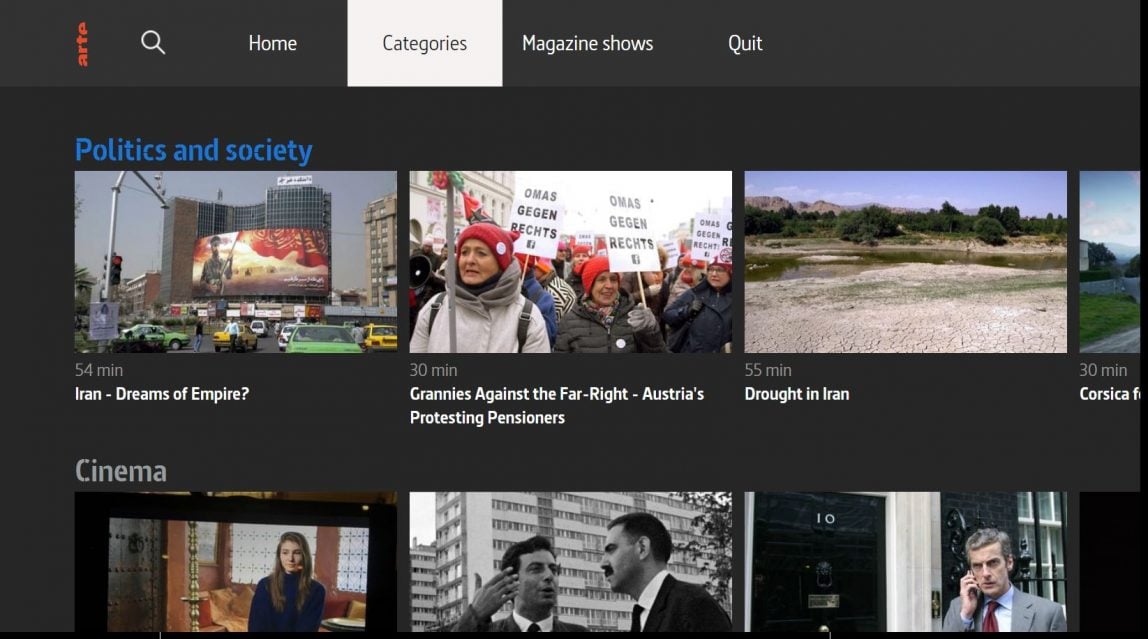 Francouzsko-německá kulturní stanice ARTE loni získala ocenění HbbTV Award za uživatelské rozhraní svého videoarchivu. VOD nabídka provází uživatele doporučenými pořady pro konkrétní den, upozorňuje na nejnovější i nejsledovanější programy a třídí odvysílané materiály do sedmi různých kategorií. Divák si tak může vybrat, zda ho zajímají filmy, dokumenty o politice, kulturní pořady, záznamy koncertů, historie, věda, nebo příroda. Porotci soutěže vyzdvihli elegantní design, bohatou nabídku a propracovaný uživatelský zážitek.