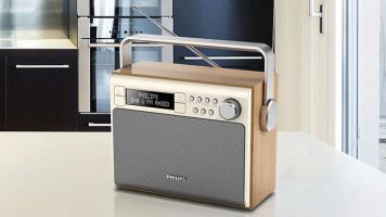 V každém případě je tenhle Philips výborným každodenním rádiem, které se dá postavit i položit, resp. opřít o sklopné držadlo. To ovšem ve směru dozadu nejde naklopit až k tělu přijímače, což je škoda, a dopředu nejde vůbec. Pokud jste při jeho instalaci limitováni hloubkou, přijímač ve svislé poloze a s držadlem sklopeným dozadu o 90° na stole zabere 148 mm, což výrobce ne zcela správně označuje za hloubku (viz tabulka). Jakmile je držadlo svisle, tedy nad přijímačem, dospějete k podstatně nižšímu číslu, asi 92 mm. A abychom to měli kompletní: v šikmé poloze, kdy je přijímač o držadlo opřen, činí půdorysná plocha (š x h) asi 210 × 175 mm a přijímač je naklopen v úhlu o něco menším než 40 stupňů (nebo něco kolem). Nicméně pokud ho takto položíte na jídelní stůl, na displej stále ještě v sedě vidíte a i ovládání je docela šikovně po ruce.