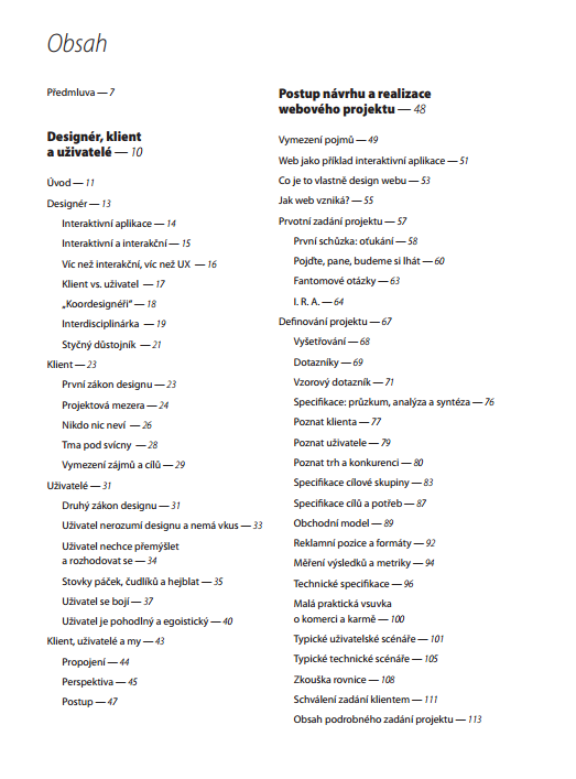Zpět k Dobrému designérovi. Kniha je hlavně o obsahu a ten je přesně takový, jako bychom si od knihy někoho s dvacetiletou zkušeností v oboru přáli.