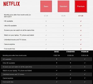 • Premium: pro 4 přístroje v HD a UHD (přehrávání na 4 zařízeních současně v HD i UHD kvalitě, pokud je k dispozici)