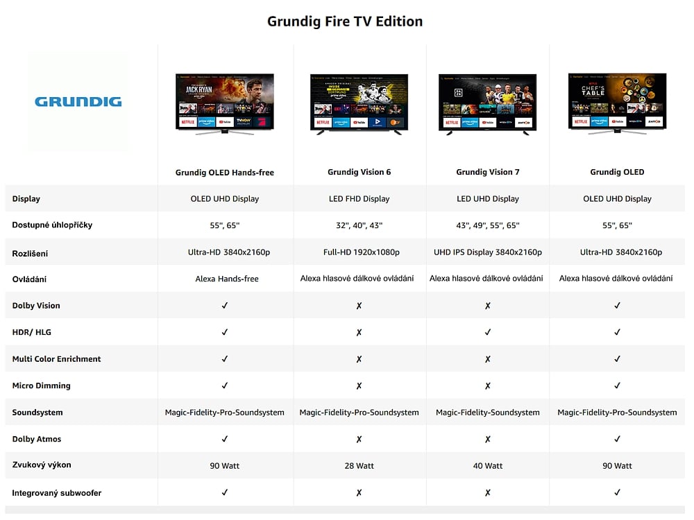 Pro německý trh je nabízeno více modelových řad přístrojů značky Grundig ve Fire TV Edition, LED Vision 6 a Vision 7 (s IPS panelem) a OLED. Přehled v následující tabulce: