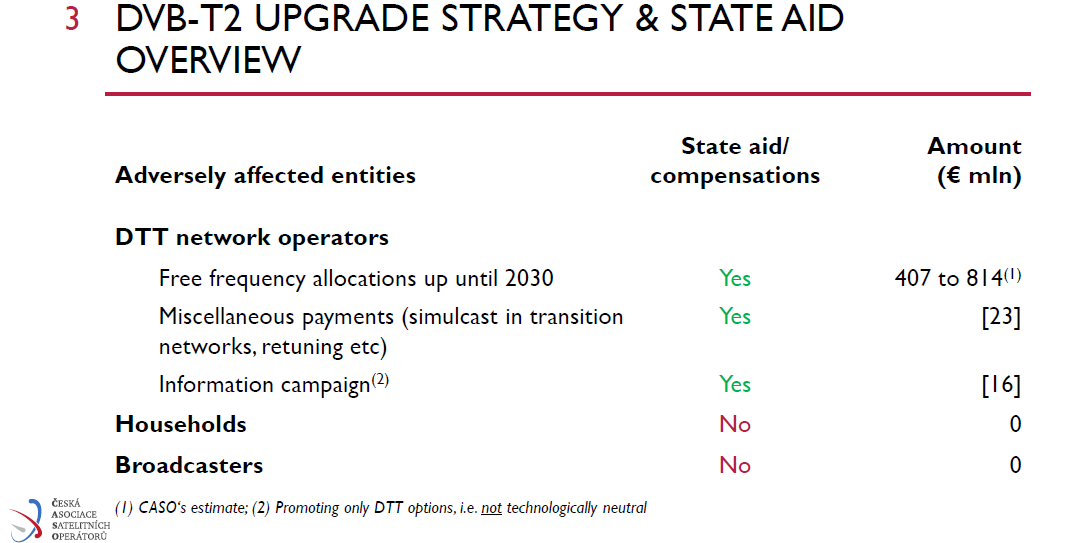 Přehled státní podpory podle prezentace České asociace satelitních operátorů.