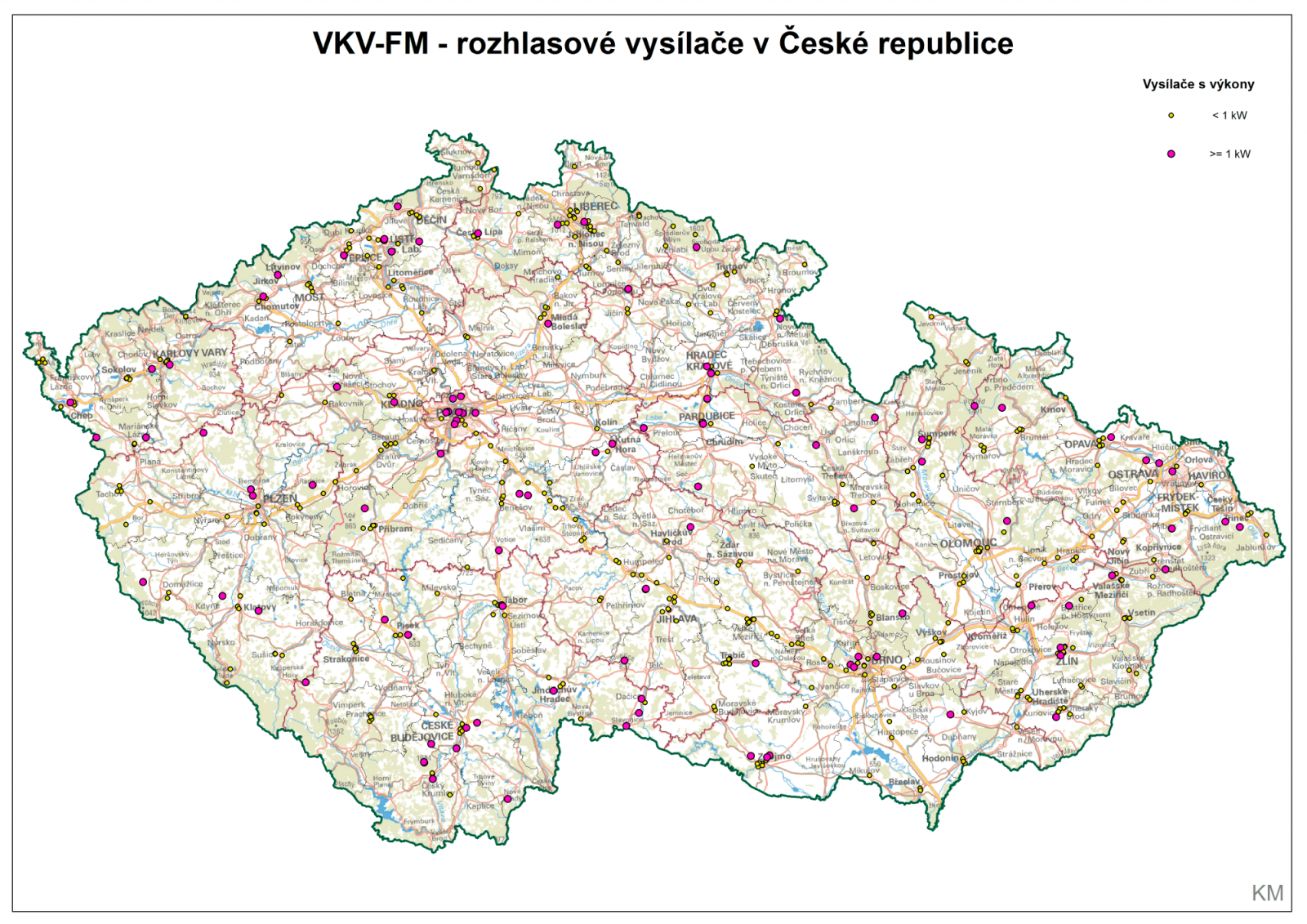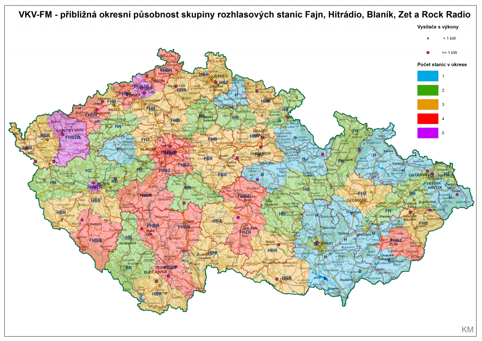 Pro rozhlasové vysílání z více než 900 vysílačů a dokrývačů (míněno technických prostředků pro odvysílání jednoho programu na jedné frekvenci) je v ČR využito přes 500 lokalit. Pro vysílání soukromých stanic slouží přibližně 730 vysílačů a dokrývačů. Z toho přibližně 510 vysílá vyzářeným výkonem do 200 W, cca 200 do 10 kW ERP (Efective Radiated Power) a jen 25 vysílačů využívá výkon nad 10 kW ERP. Oporou pro tyto počty mi byl aktuální seznam VKV-FM vysílačů v České republice.