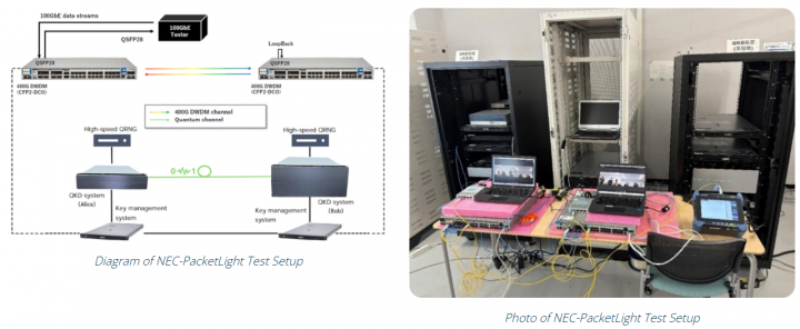 PacketLight Networks společně s NEC Corporation úspěšně předvedly kvantovou distribuci klíče (QKD) vedle existujícího 400 Gb/s DWDM přenosu optickým vláknem v NEC laboratořích v Japonsku. Demonstrace využila systém NEC pro QKD a PacketLightův PL‑4000M 600 G Muxponder, přičemž kvantový kanál běžel paralelně v odděleném vlákně vedle hlavního DWDM provozu. Díky tomu byla zajištěna stoprocentní propustnost klasického přenosu bez dopadu na latenci, zatímco QKD běžel s nízkým zpožděním bez interference. Tento přístup ukazuje, že quantum-safe šifrování klíčů lze integrovat do existujících vysokorychlostních sítí bez výměny infrastruktury, čímž vzniká praktická a škálovatelná cesta pro nasazení QKD v reálných operativních prostředích.