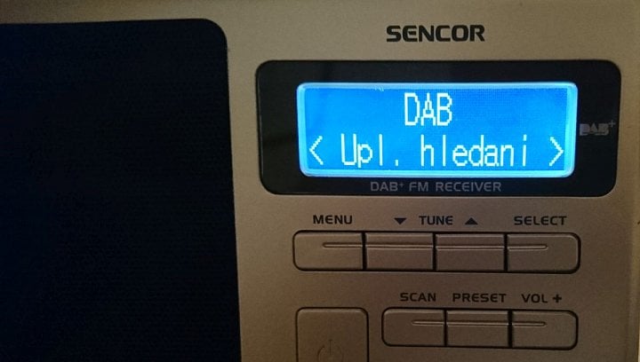 V menu nastavení (Menu) se pohybujete prostřednictvím naznačených šipkových tlačítek a Select, tlačítko Zpět tu není a někdy i trochu chybí. O stupeň výše vyskočíte po odmáčknutí volby, resp. její změně, tlačítko Menu skoro vždy vyvolá návrat na základní úroveň do volby označené jako „Upl. hledani“. Nejde to například při úpravě času, kterou musíte nejprve zcela dokončit. U přijímače nehledejte tlačítko Function a přepínání je rovnou označeno DAB/FM.