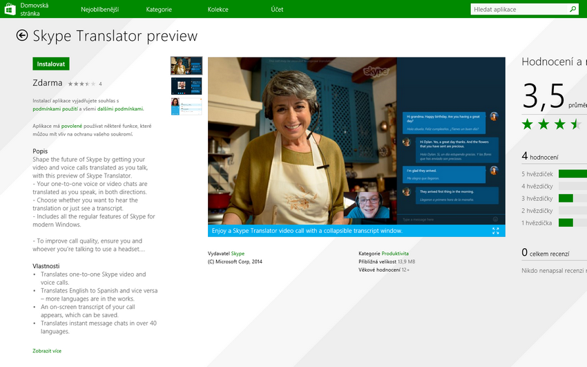 Skype Translator je volně ke stažení ve Windows Store pro uživatele Windows 8.1 a Windows 10 Insider Preview.