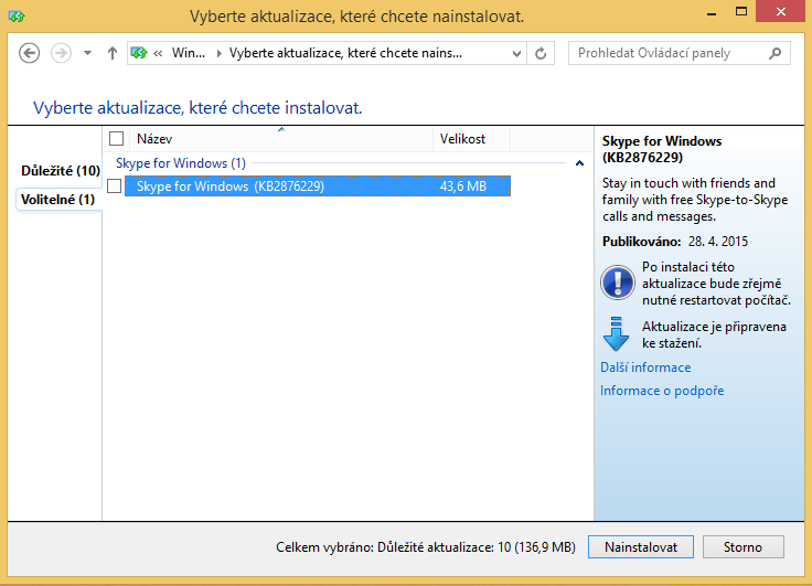 Microsoft Update uživatelům Windows Vista a vyšších nabízí kromě instalace aktualizací také desktopový Skype.