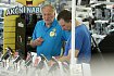 16:34 – Zpravodajské studio je zatím složené v kamionu, postupně se musí složit a připravit k vysílání. Na kamionu je umístěná i velkoplošná obrazovka. První mobilní relaci budou z Mikulova moderovat Terezie Kašparovská a Tomáš Hauptvogel. Ti právě ukazují novinářům výsuvné mechanismy, které postupně skládají celé studio. „Je jich celkem šedesát,“ prozradil Tomáš Hauptvogel. Podle Terezie Kašparovské lze výsuvné šuplíky ovládat i manuálně, pokud by motory selhaly. V zázemí kamionu je i miniaturní maskérna.