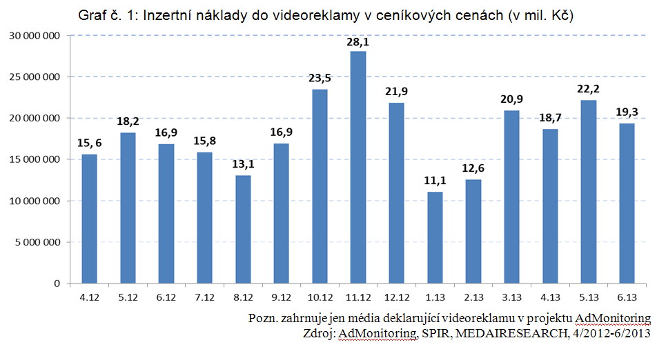 SPIR měří videoreklamu něco přes rok a za tu dobu zaznamenal zobrazení za 275 milionů Kč v cenách ceníkových. Za posledních dvanáct měsíců — od července 2012 po červen 2013 — naměřil 224 milionů Kč. Odhaduje, že za rok 2012 vzrostla v „inzertním výkonu“ meziročně o 67 %.
