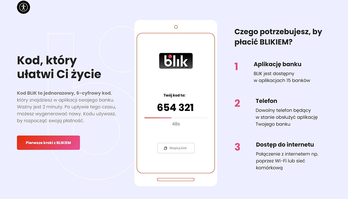 Pomocí „Blik“ lze platit v obchodech, v e-shopech, vybírat hotovost z bankomatů anebo posílat finance přátelům s použitím jejich telefonního čísla. Vše potřebné zařídí bankovní aplikace. Blik aktuálně podporuje 15 bankovních domů, působících na polském trhu. Hlavním partnerem je karetní asociace Mastercard.