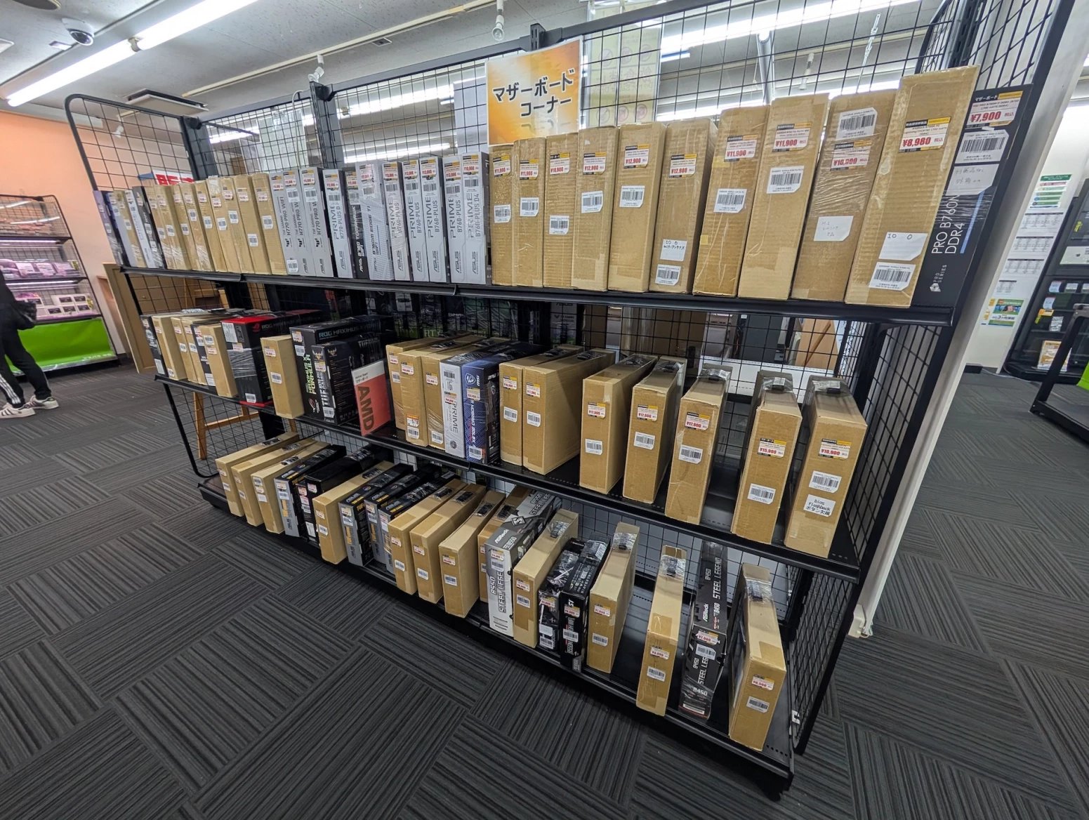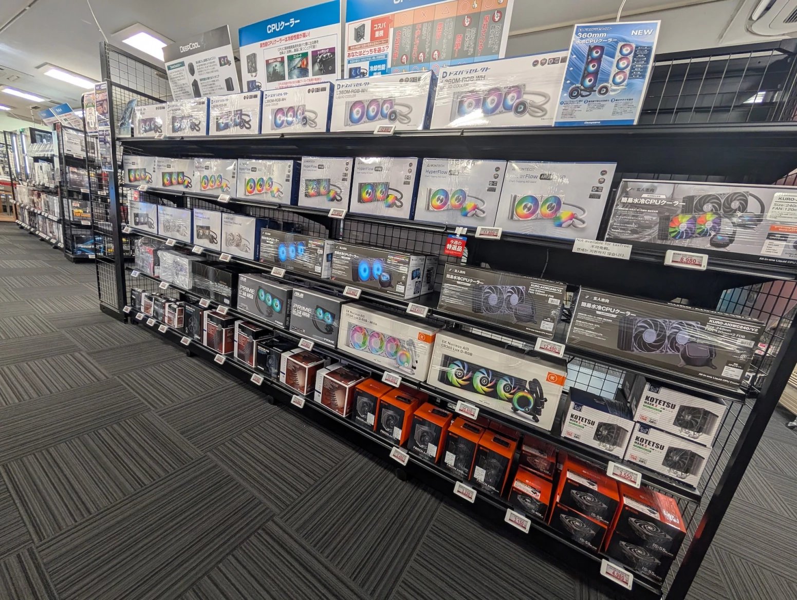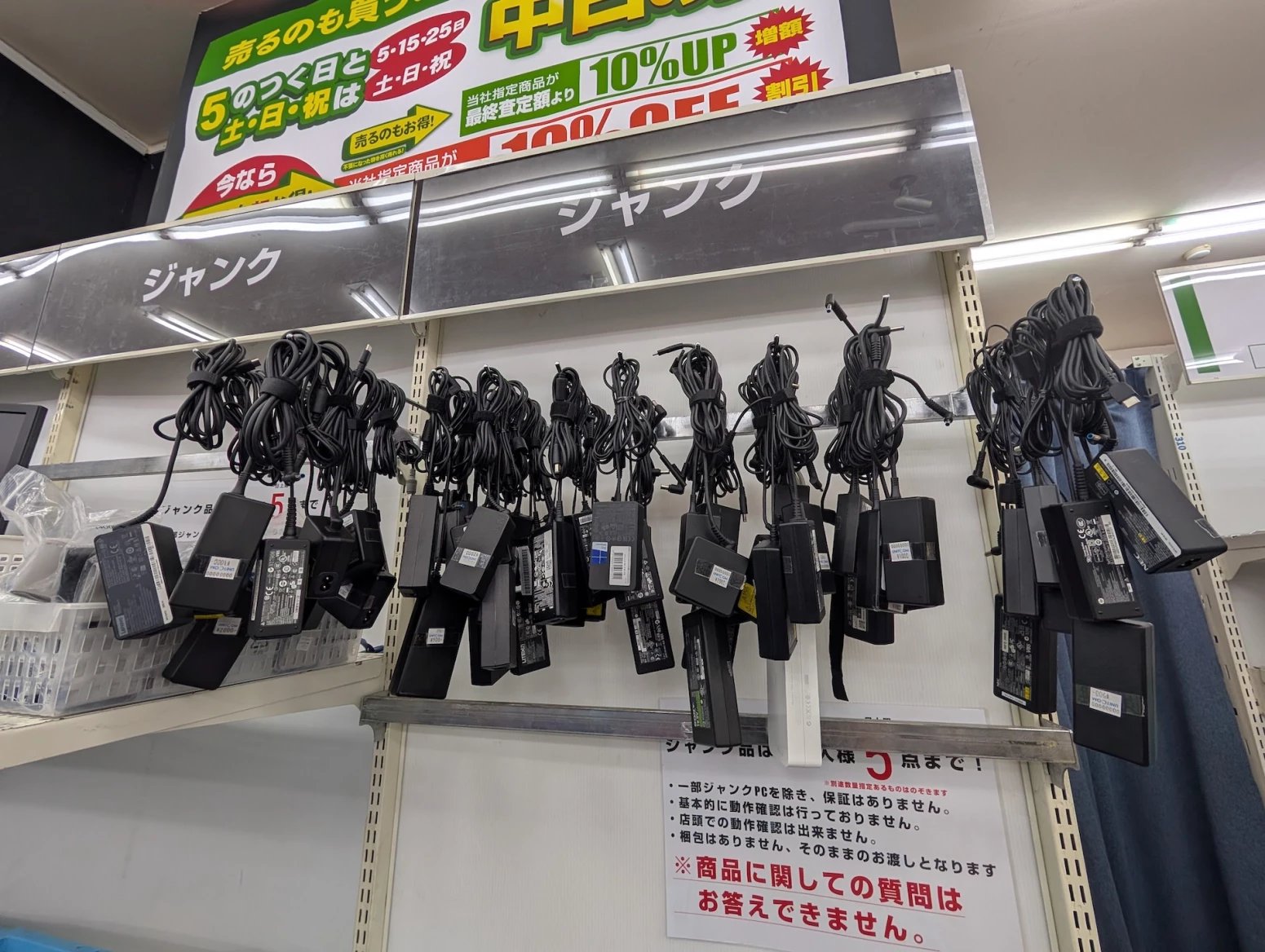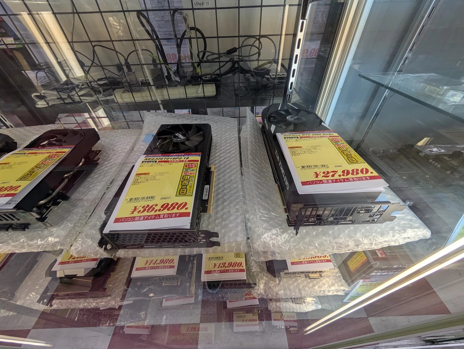 Japonské počítačové obchody zároveň nabízí zboží z druhé ruky. Některé se na něj vyloženě specializují. Prodavači ho testují, čistí a repasují. Na místě si tak můžete koupit třeba použitý procesor nebo grafiku, případně se lze přehrabovat ve starých větrácích a dalších komoditách.
