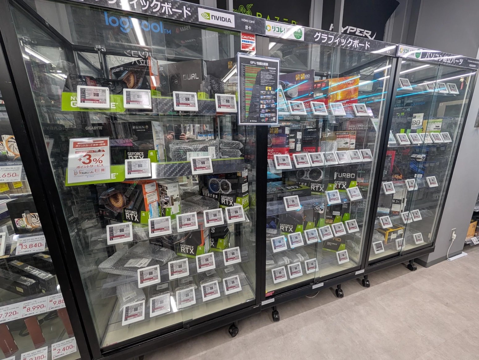 Mezi komponentami lze narazit na značky, které v Česku a Evropě nemáme a neznáme. Běžně je skladem u nás chronicky nedostatkové zboží, a sice aktuální generace grafických karet od Nvidie a AMD. Ceny jsou ale rovněž vysoké.
