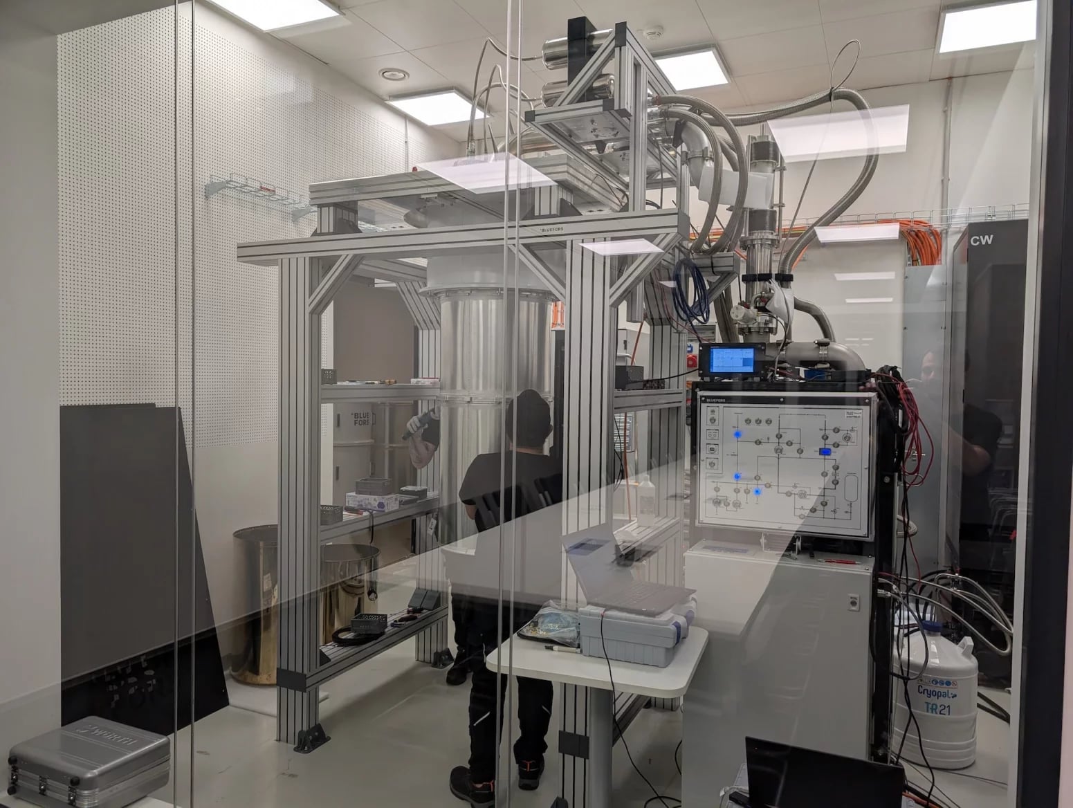 Chladicí systém obsahuje šest „kýblů“ ze slitiny mědi, které se na sebe vrství jako matrjoška. Výrobcem je finská firma Bluefors zaměřená na kryo. Pro dosažení teploty v oblasti, kde bude umístěn čip, se budou míchat dva izotopy helia (3 a 4). Na začátku procesu se nabírá kapalný dusík a v rámci procesu se využívá i vakuum.
