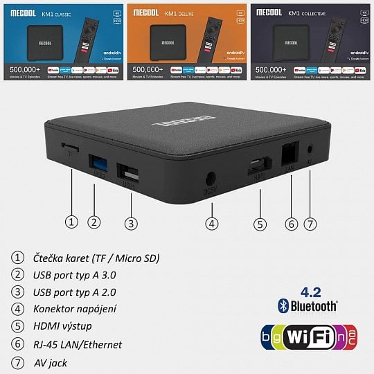 Jak již bylo popsáno výše, po stránce osazených portů má varianta Classic blíže k modelům KM 1 / KM 3, varianta Deluxe zase k více vybavenému modelu KM 2 s certifikovaným Netflixem 4K.