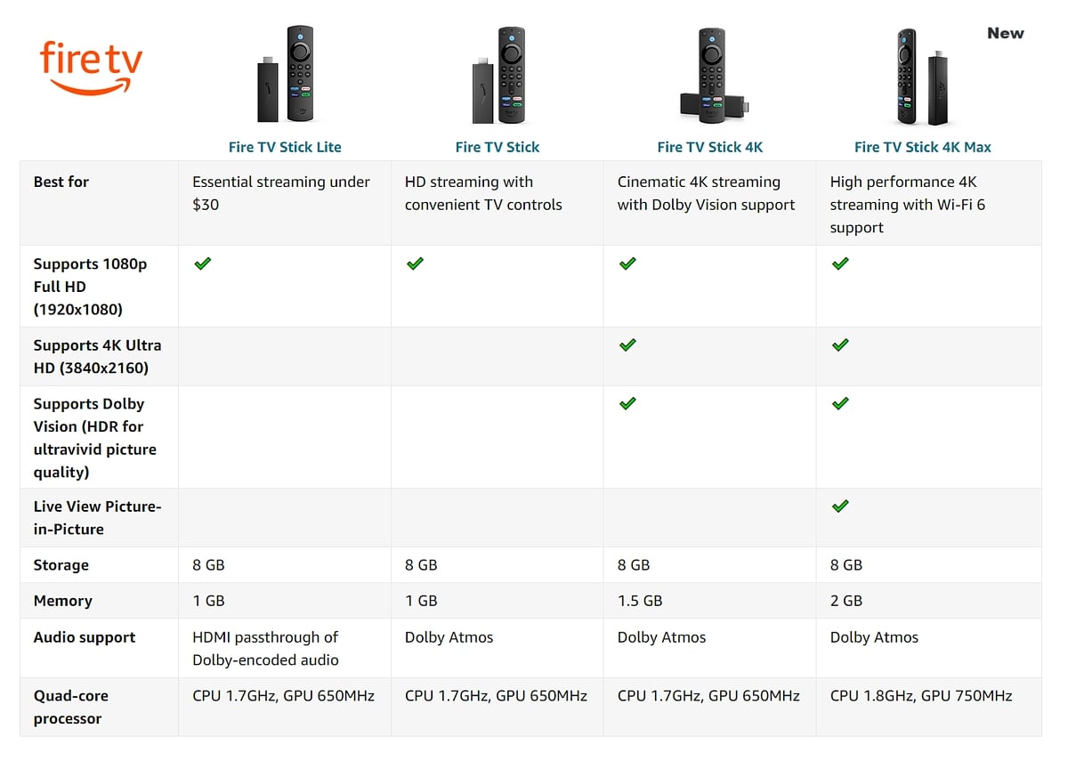 Ani obchodní impérium Amazon Jeffa Bezose nezaostalo za konkurenty a máme zde zcela nový model označený Fire TV Stick 4K MAX. Nabídka Fire TV sticků pro rok 2021 v tabulce níže.